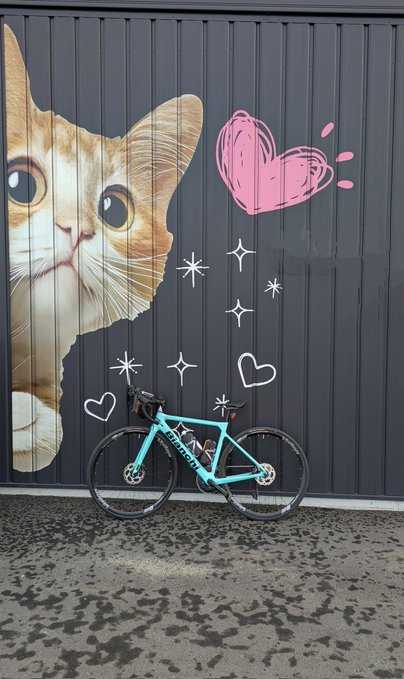 3日ダメ曜日 ビアンキにも慣れてきたのでとりあえず加古川上流を目指す。最近お騒がせの熊の事も考え山は避けます。因みにツキノワグマは40~80キロと足が速くロードバイクでは逃げれまへん。 ![]() フッと目に止まったポッんと柿の木を見れば今年は豊作みたいです。 ![]() 滝野にぎわいプラザで一休み。 ![]() お昼過ぎで25名の訪問者になりました。 ![]() どうでも話しやけど同色だ 後々のこのビアンキカラーが生きてくることになります。 ![]() 気温18.3度 播磨の山々を眺めて仁王立ち。 ![]() 上り坂も好きやけど下りも楽しい。でもココは中国自動車道まで1km地点で初めて走る道でした。12%の勾配もありスリップ止め路面になっていました。写真で分かるように空模様が怪しくなってきています。 ![]() ひまわりの丘で見頃ではないコスモスを眺める。三連休もあり駐車場はフル満車と言うのにバカなドライバーがいてガードマンともめていました。 ![]() 何度も言っていますが連休中は車での移動はアカンと言う結論。足が付いてうるんだから元気なら自転車か徒歩で行くべき。 ![]() けっきょく社から小野そして加古川間で通り雨に5度も合いました。 走行距離82.60km 平均気温19度 雨宿りタイム計38分 雨宿りもありロングライドにならず。 ![]() オマケのライドショット🐈 ![]() お気に入りの記事を「いいね!」で応援しよう