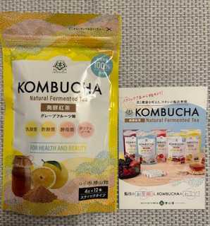 種類はストレート(オリジナル)、ザクロ、グレープフルーツ、ミックスベリーの4種類あり、 私はグレープフルーツを選びました。 コンブチャは腸内環境を整え美容健康に導くことが期待できるとのこと、 効果を実感したかったので、5袋セットで! 裏面表示。 150ml~250mlのお水や炭酸水に1本入れます。 320mlのお水のペットボトルに 2本入れてみました。 ・・・なんですが、ご注意ください~ 開栓したばかりの飲んでないペットボトルにそのまま入れると パウダーが中に入っていかず、どんどん発泡してくるので溢れますw ちょっと減らしてよくかき混ぜて、また減らしてもう1本入れて・・・ で出来たのが↑の写真です。 500mlのペットボトルを2/3くらいまで減らして入れるのがいいかな~ お味はとっても飲みやすくて美味しいです。 グレープフルーツってあるけど、レモンティーに近い感じもします。そして微炭酸っぽい。 ずっと快調だったのが最近ちょっと不安定なんですよね。 これで腸内環境が整うならいいな~