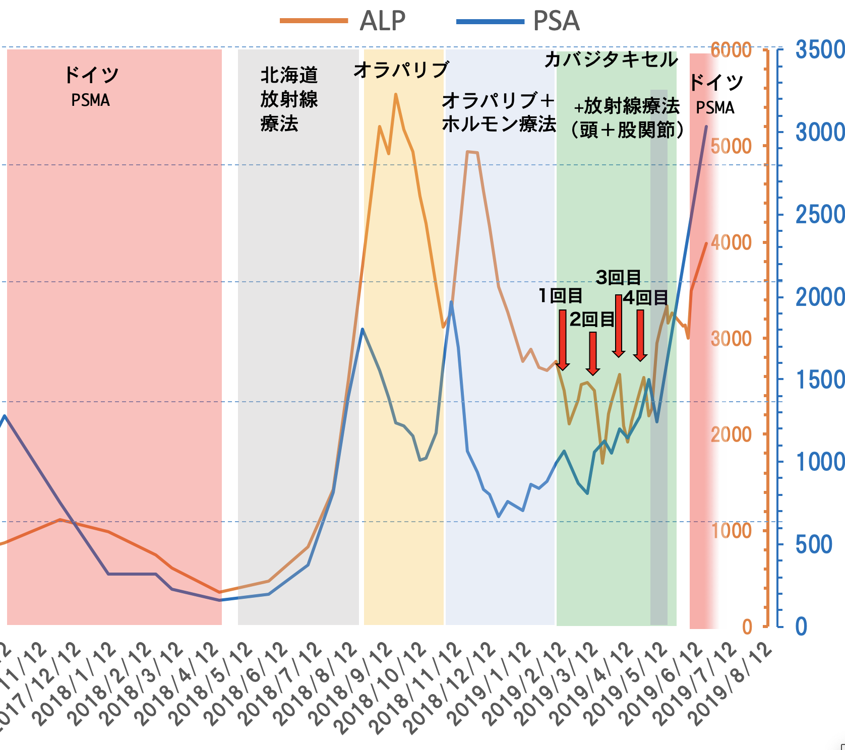 ALP:3497から3984に上がりました。 LDH:822から1123に上がりました。 長期間ブログを更新していなかったので、ちょっとわかりにくい部分もあると思いますがお許しください。 ドイツにPSMA治療をしに行きましたが、今回は効果があるのかわからないです。 PSMAでは、40箇所のがん細胞が見つかりました。 日本に帰ってきてからPET検査をしましたが、PET検査の方がかなり画像のがん細胞が多い様です。 ![]()