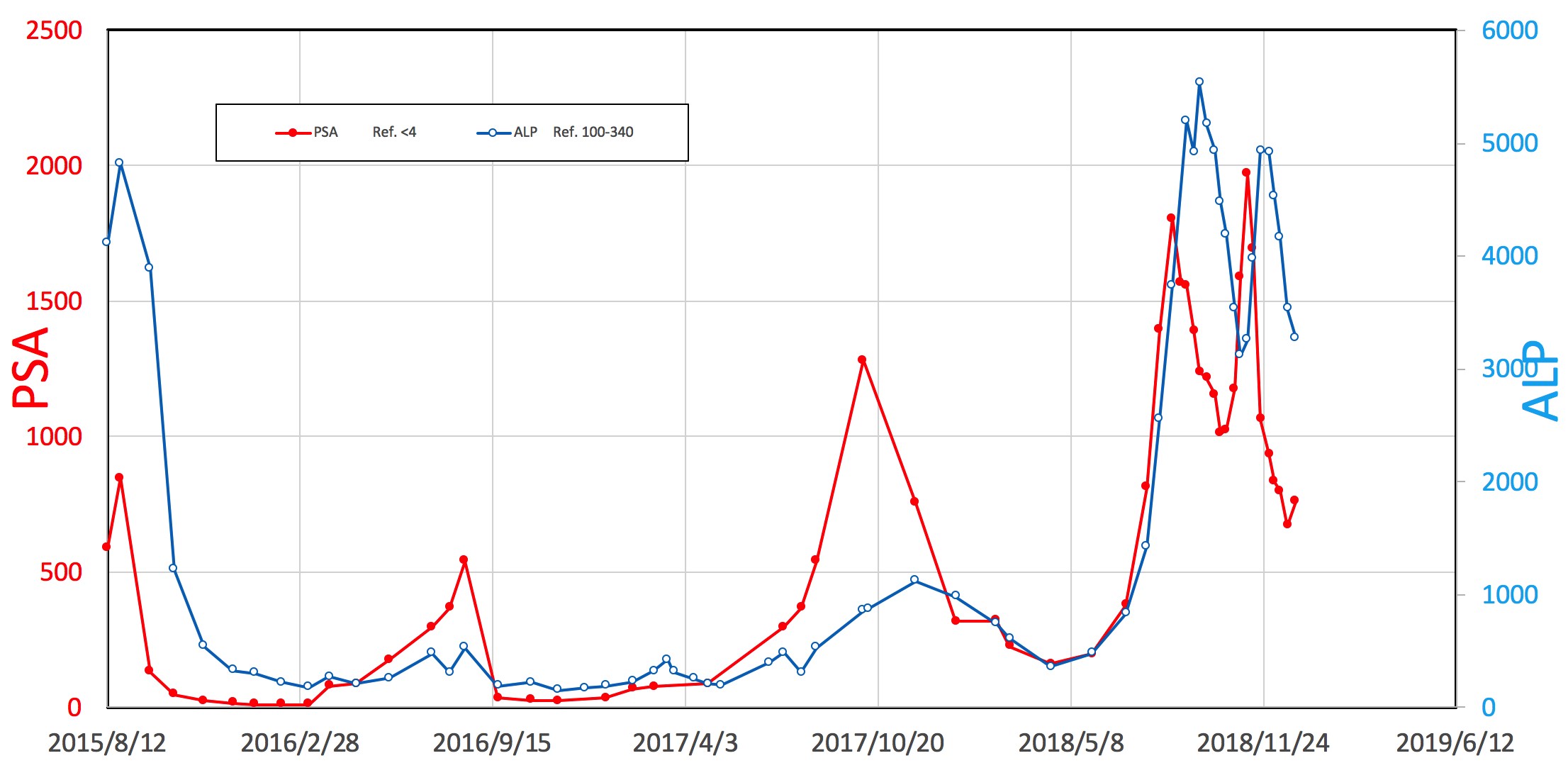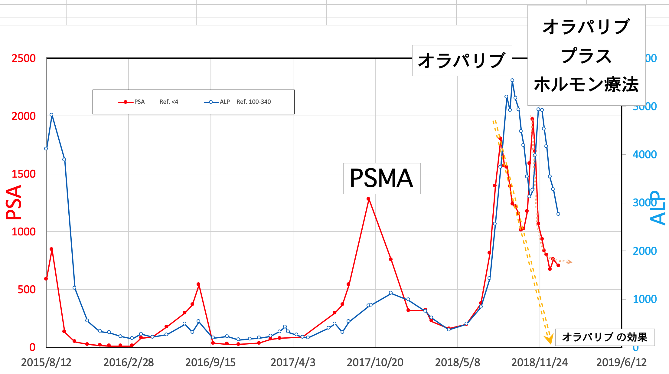 PSA:705だったのが864まで上昇しました。ALP:2756だったのが2889まで上昇しました。オラパリブ は、私の遺伝子変異があるのでしばらく続けそうです。(お金が心配)前立腺がんの進行の参考の一つのPSAとALPとLDHが増えてしまいました。このため、更に (アボルブ)という薬を追加することになりました。この薬は他のところで実施している治験(カミさんが調べたのでどこかは知らないです)と同じそうです。しかし、少し古い論文では進行がんの増殖が促される様なことが書かれてあった様です。しかし、注意書きの中で『尿を出やすくする薬です』と書かれています。頻尿、切迫尿の私に『尿を出やすくする薬で大丈夫なのでしょうか。数値が落ち着いてくれるとありがたいのですが、心配事がだんだん増えてきます。今日は午後から前回行った新たな遺伝子検査の結果がわかる日です。もうそろそろ家を出発しないといけないです。最後まで読んで頂きありがとうございました。