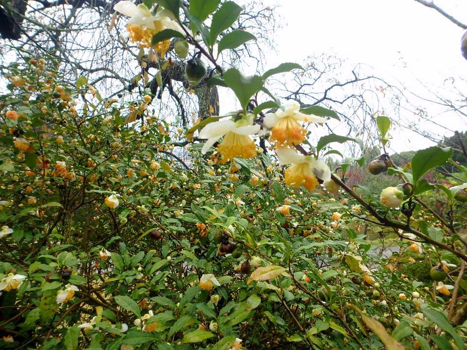 茶の木、ツワブキいっぱい、園内の紅葉(半田山植物園)