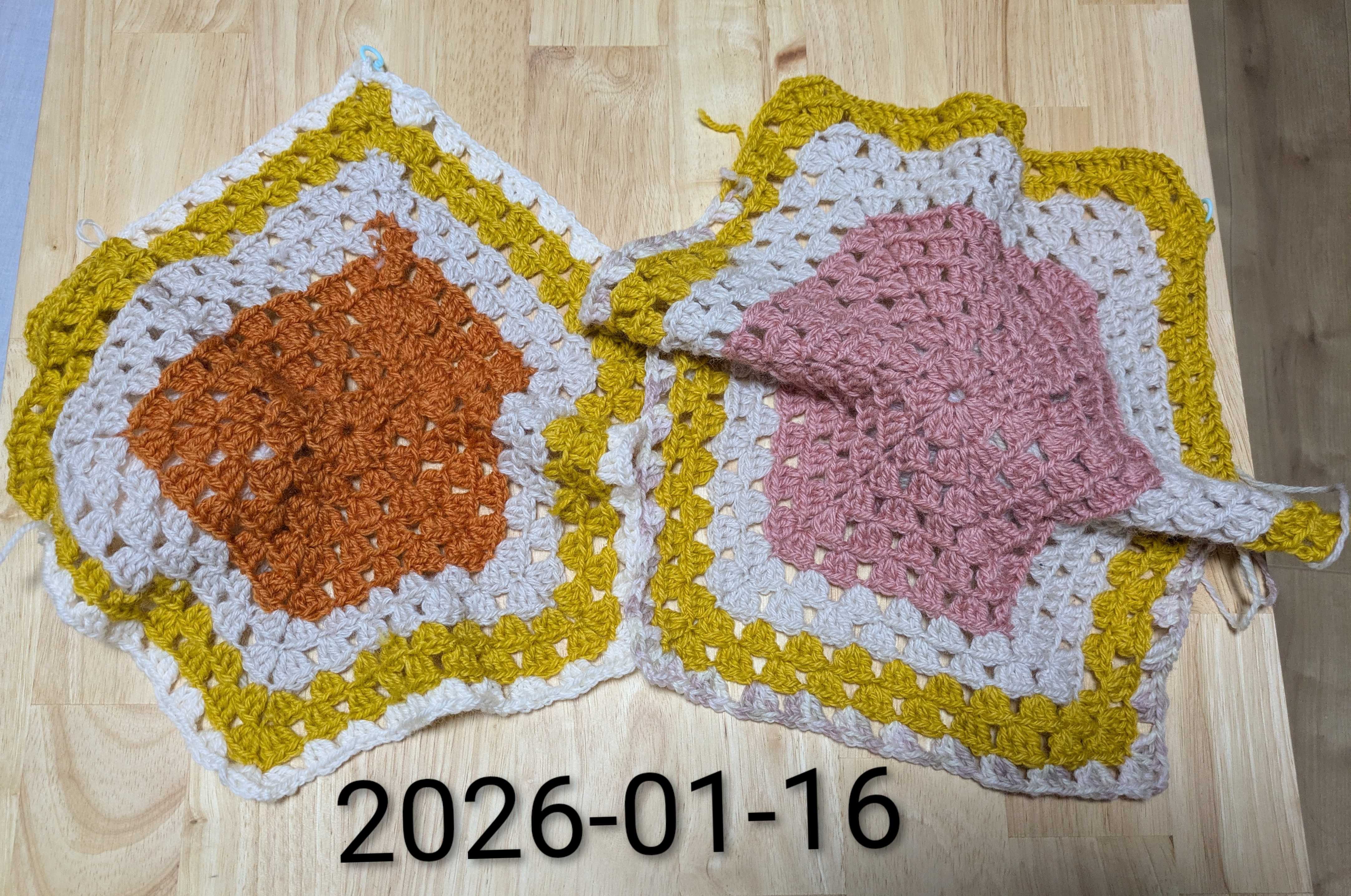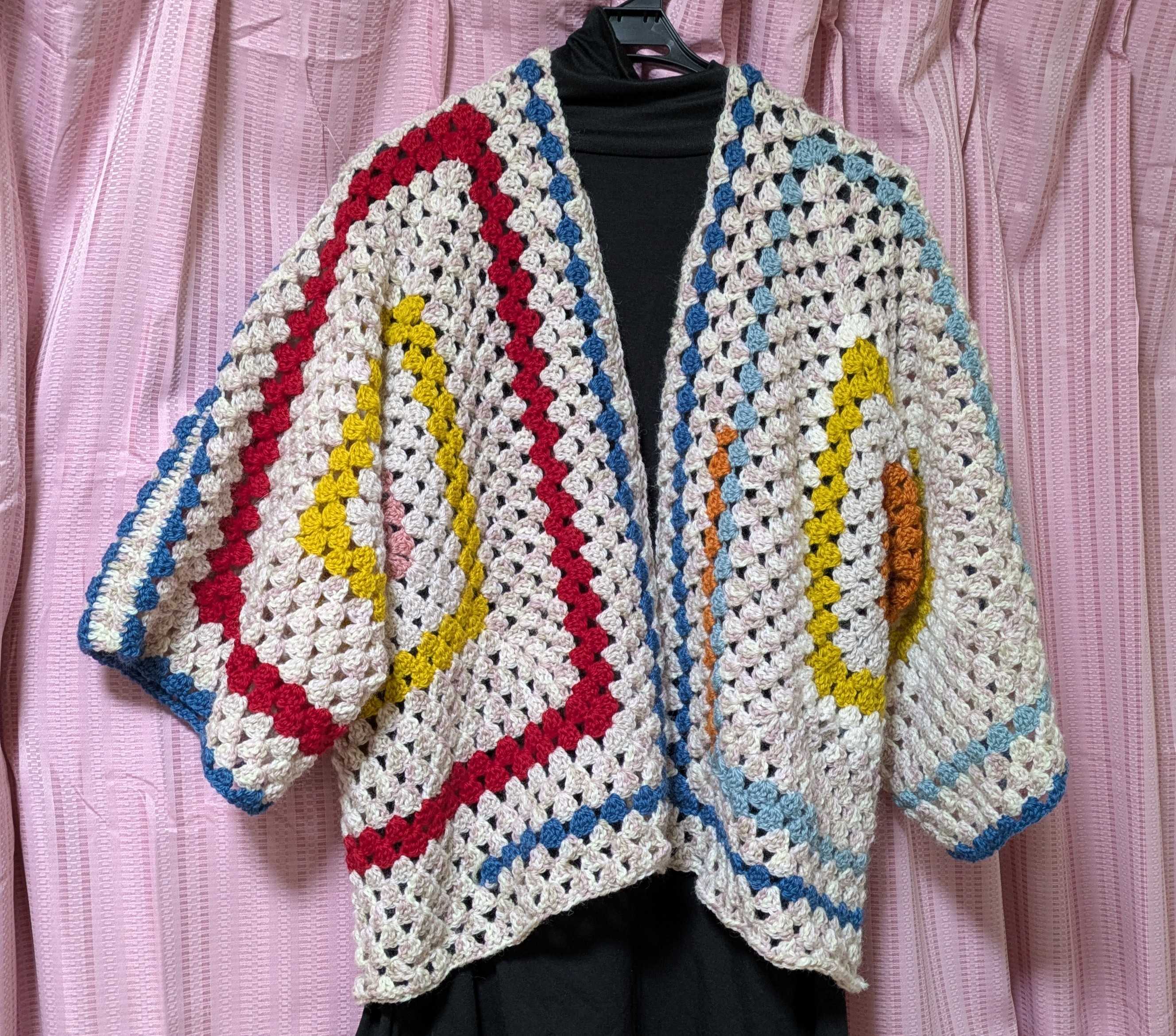 ピンク・水色のミニバラマルチカバー編みました♪