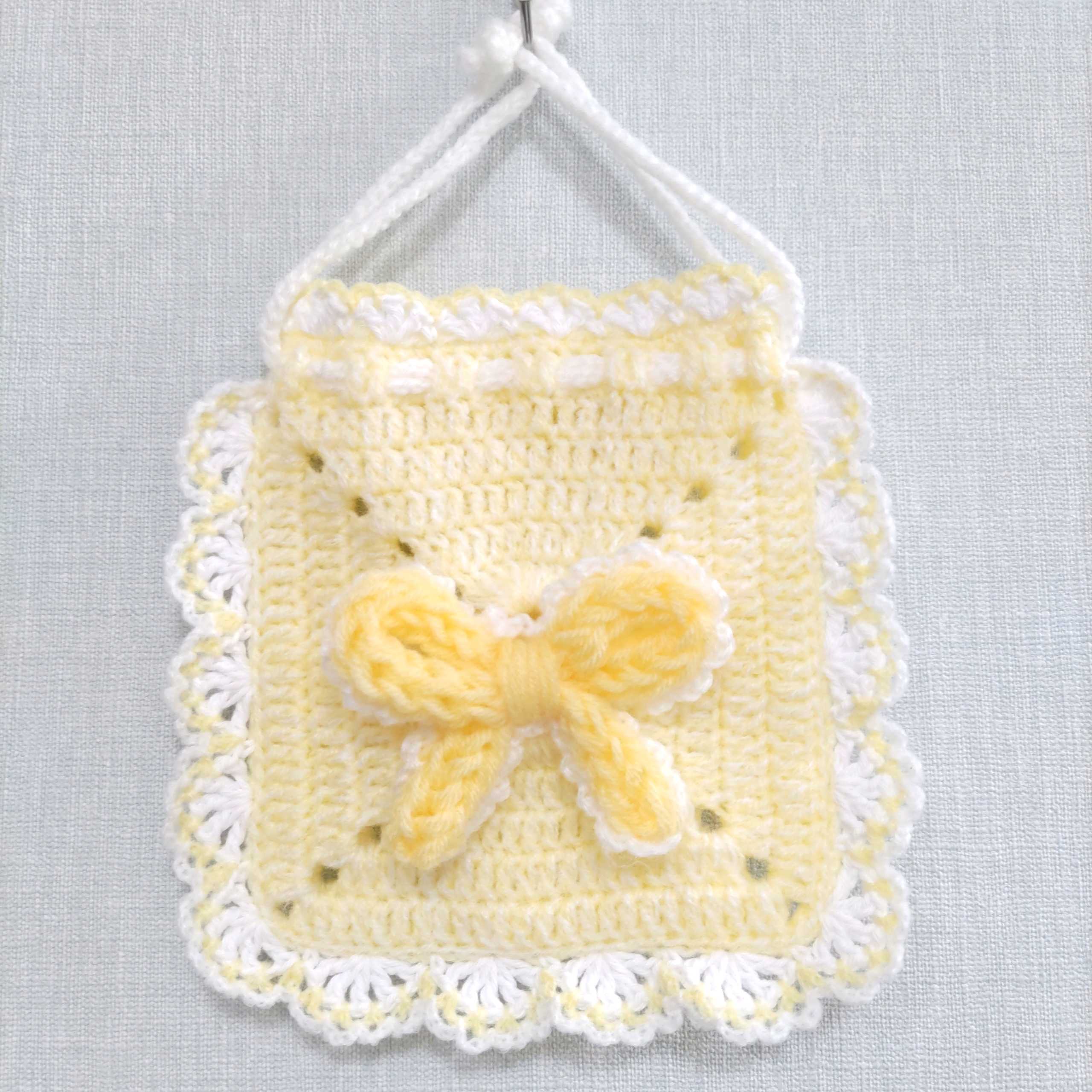 イエローのリボン巾着編みました♪