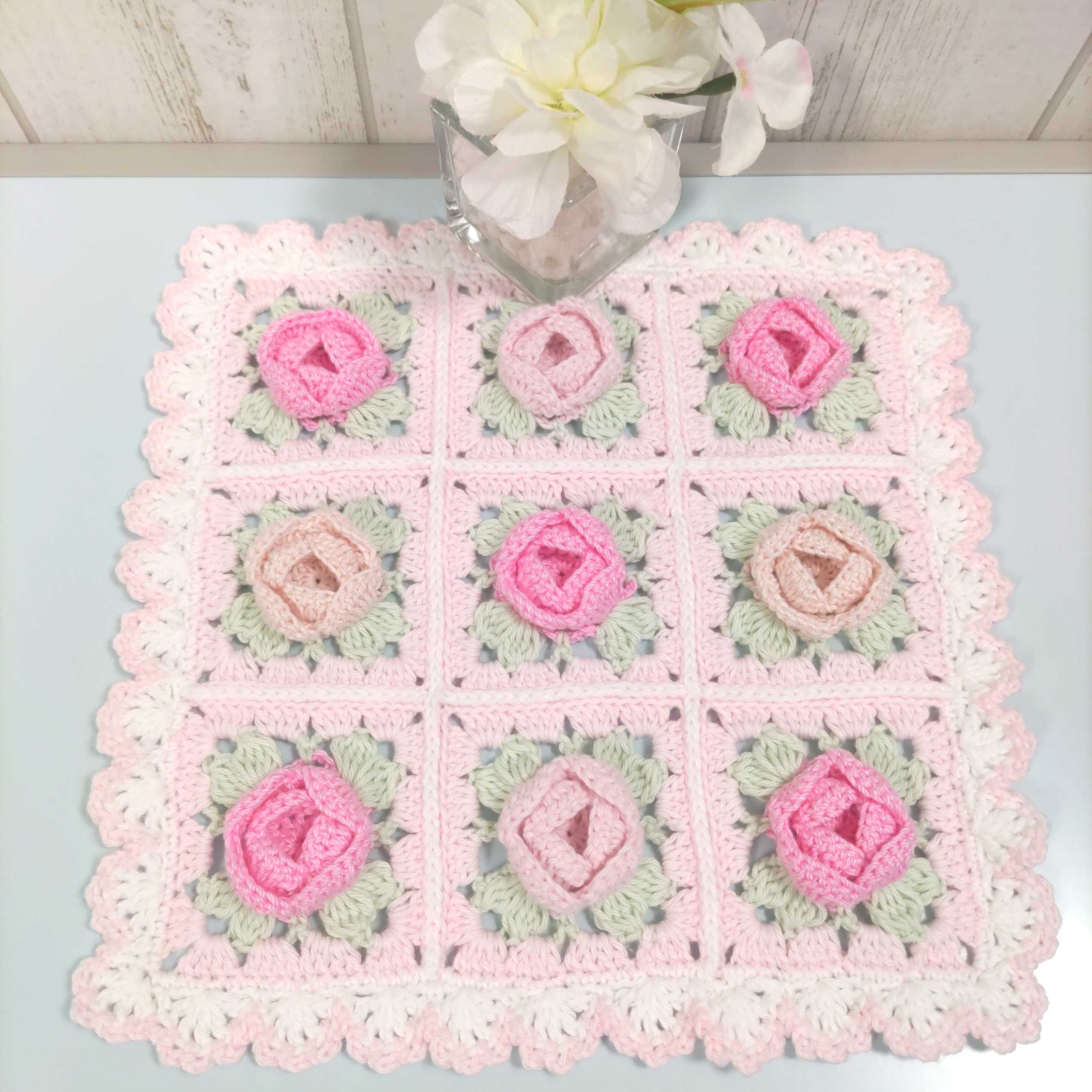 薔薇のブランケット編みました♪