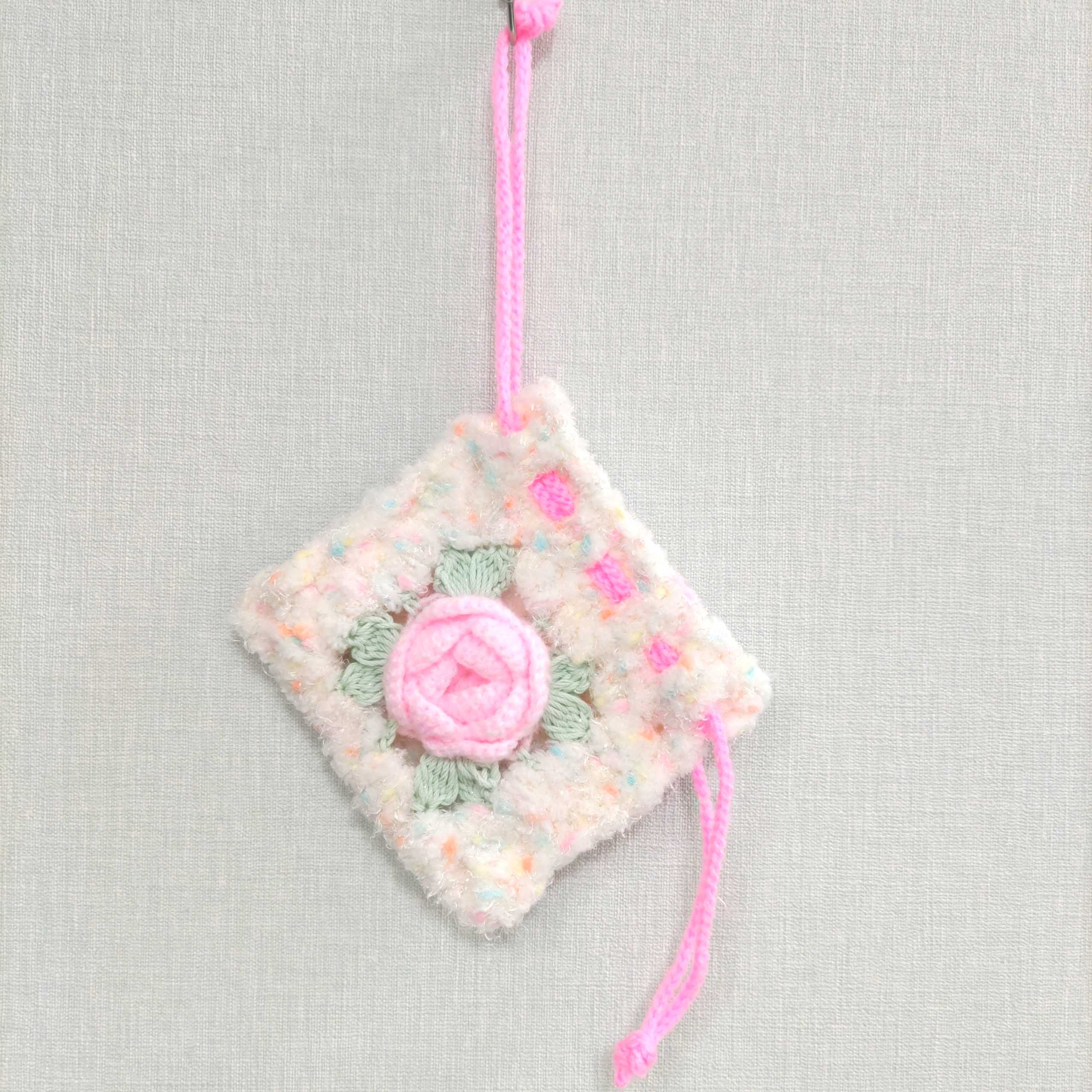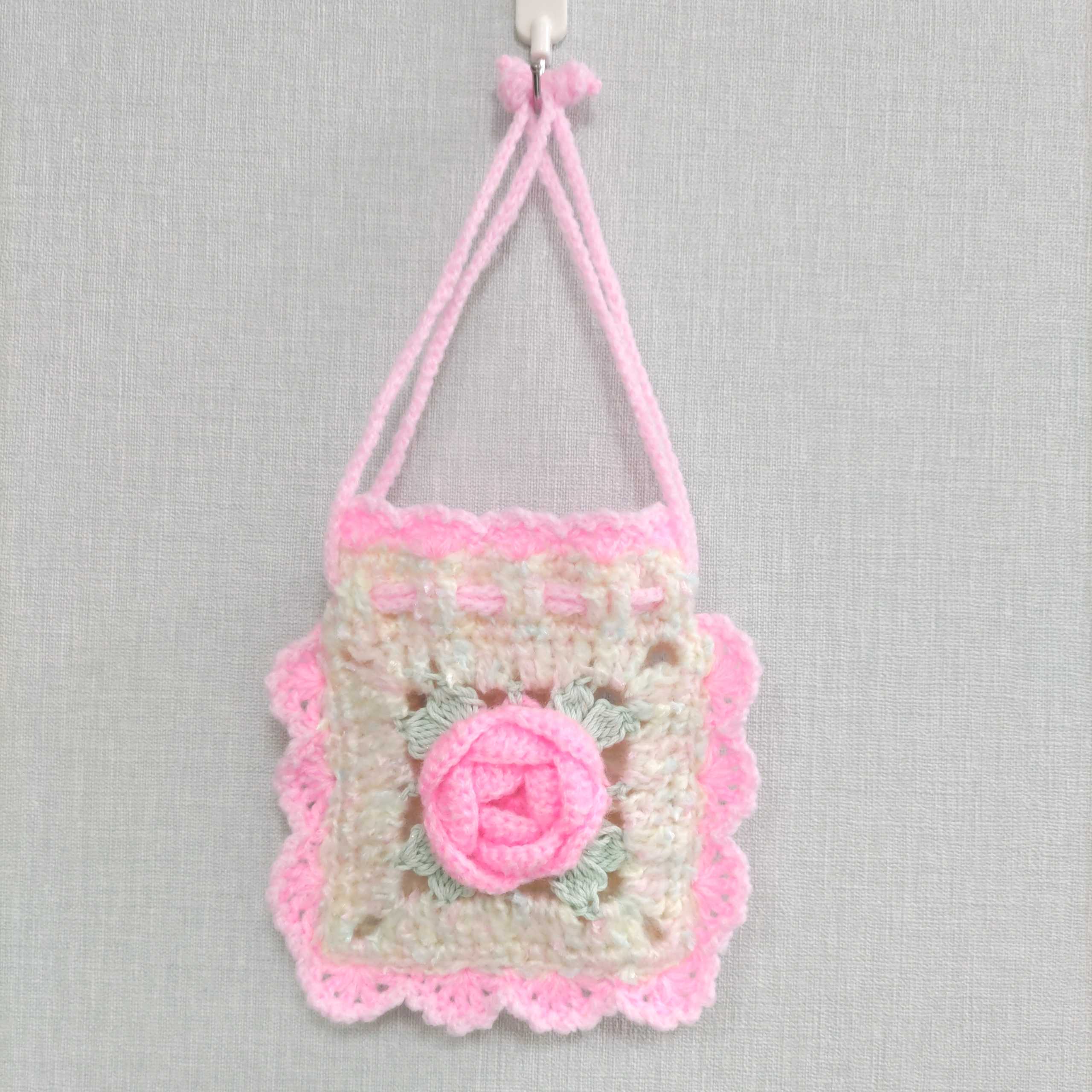 ミニ薔薇ピンクの巾着編みました♪