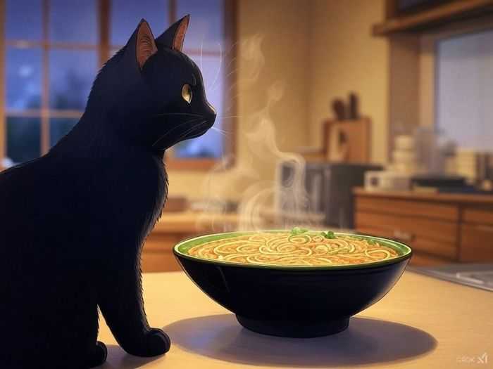 ペガサスで散歩する黒猫