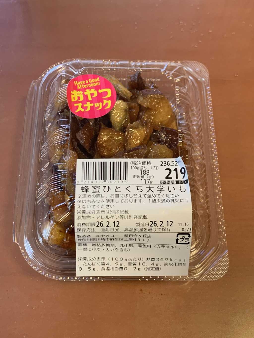 商品研究 「ヤオコー」の「蜂蜜ひとくち大学いも」100gあたり188円…