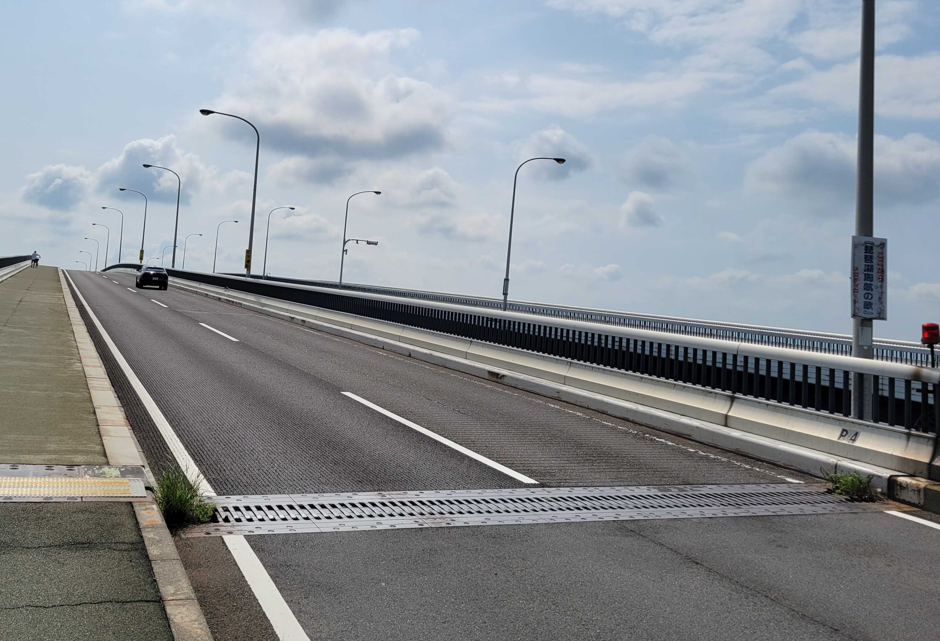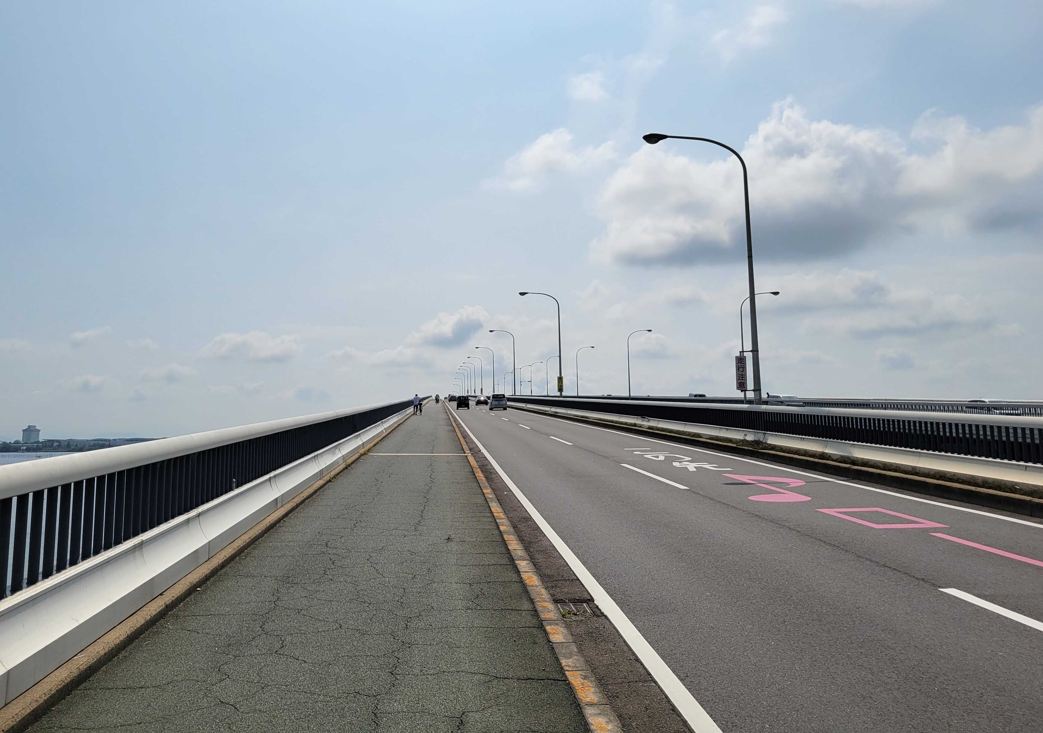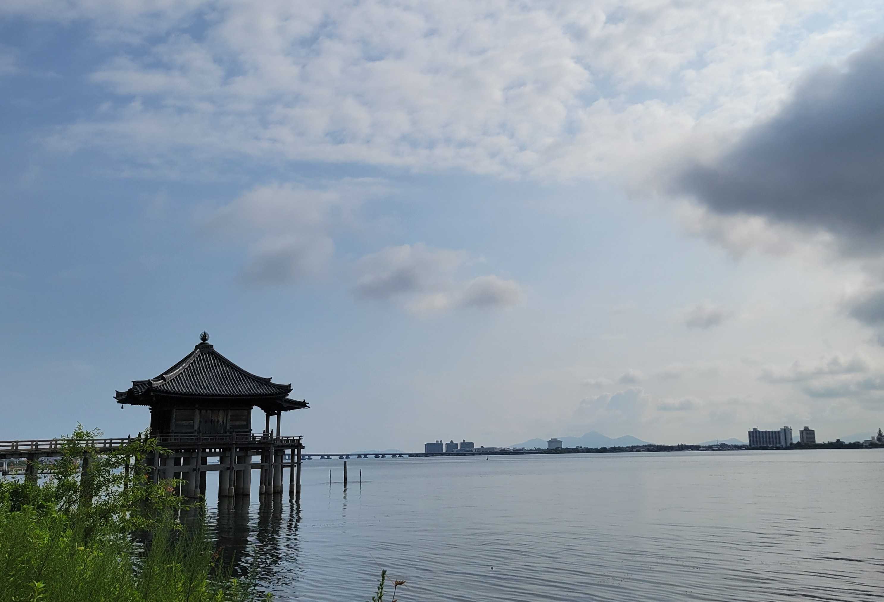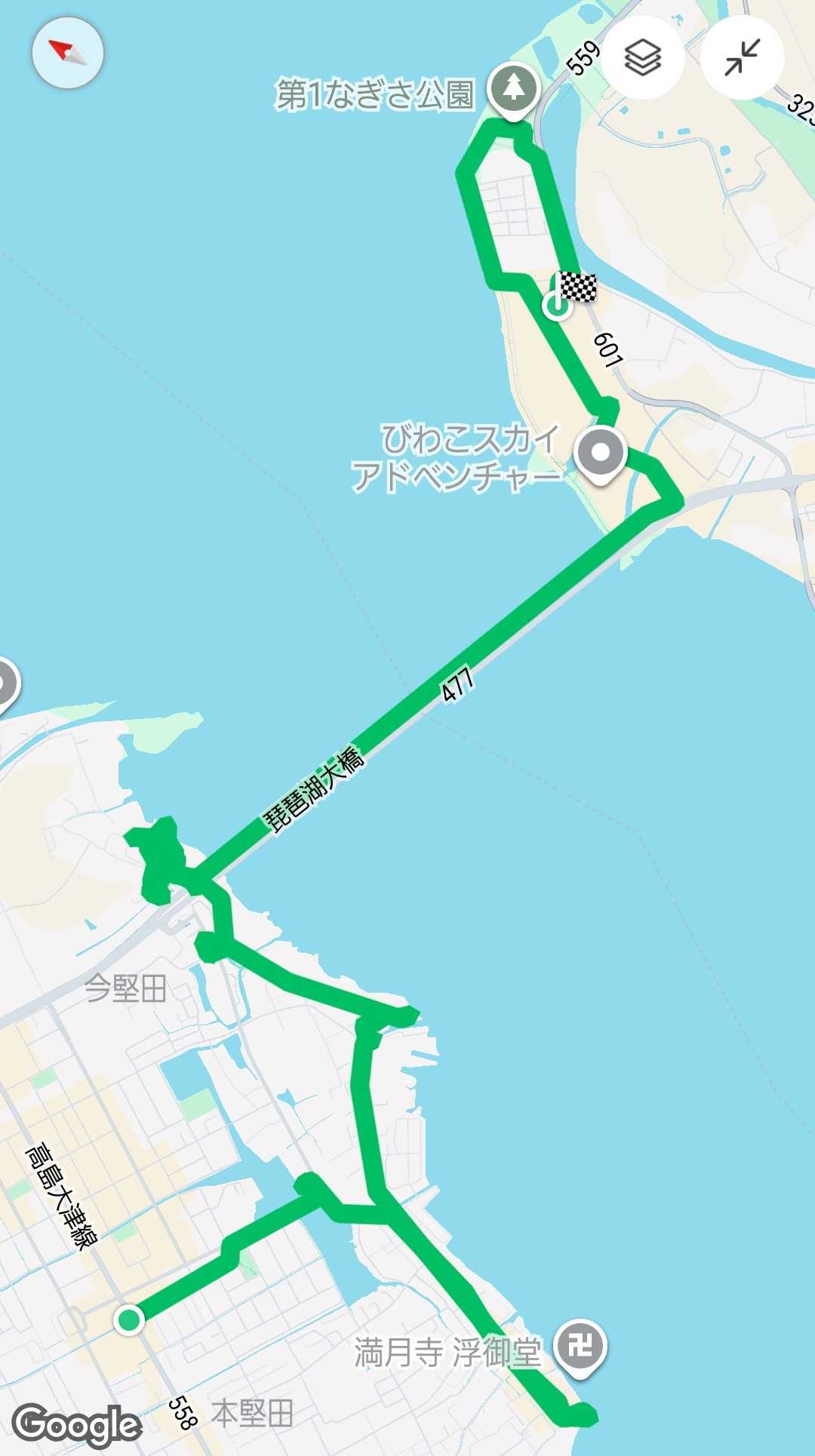 気ままな歩き録。 2025年8月15日 大津市 晴れ 最高気温34℃ 最低気温24℃ 残暑厳しいお盆の日。琵琶湖大橋を歩いて渡ってみた。 ![]() (琵琶湖を跨ぐ巨大構造物) 8月は長距離ウォーキングするにはちょっと危険な季節。 特に、今年の夏は長くてとても暑い。 程よい距離で、無理なく歩けて、歩いた後にゆっくり休めるコースを考えた。 堅田から出発して琵琶湖大橋を渡り守山側へ向かう。 歩いた後は、橋の袂にあるピエリ守山に併設のスーパー銭湯 水春 へ。 Google Mapの示す距離は約8km。 琵琶湖大橋。 徒歩でビワイチでも幾度か渡った橋で、このブログの一番最初に歩いた場所でもある。 橋の歴史と概要。 昭和39年(1964年)9月に2車線で開業。 平成6年(1994年)7月に新しい橋が開通、現在は上り車線橋(新橋)と下り車線橋(旧橋) の4車線で運用されている。 橋の長さは、上り車線橋(守山から大津へ向かう橋)が1,400m、下り車線橋(大津から守山) が1,350m。最高部は湖水面から約26m。 通行料は、自動車・バイクは有料だが自転車・歩行者は無料で通行することができる。 また、下り車線橋の最高部には展望スペースが設けられており、そこからの景観は素晴らしく 琵琶湖の広さを体感出来る眺めだ。さらに、湖を渡る風がひとときの凉も与えてくれる。 琵琶湖も、この橋を境に南側を南湖、北側を北湖と呼ばれている。 8:00 JR堅田駅。 堅田の街並みを少し散策して、大橋西側袂の道の駅びわ湖大橋米プラザを経由し 守山側へ、第一なぎさ公園のひまわり畑をみて、最終目的地の水春に向かう。 既に30℃に迫る気温。 普段使いの水筒の他、予備として冷凍のペットボトルのお茶を1本リュックに入れた。 さぁ歩こう。 ![]() 駅から琵琶湖に向かって直進1kmほど。 堅田内湖。池中心に KATATA のオブジェが。 ![]() 8:30 琵琶湖湖畔に到着。 今日の琵琶湖。やっぱり今年の夏は空気が白い。 ![]() 満月寺浮御堂。 何度も来ているので今日は入園しない。寺の外からのお堂風景。 ![]() 8:50 出島の灯台。 駅から浮御堂を経由して約3km。 幾度か来ているが途次立ち寄り。 ![]() ここから眺める琵琶湖大橋の風景が好き。 ![]() 9:10 道の駅 びわ湖大橋米プラザ に到着。 スタートから約4km。 ![]() 館内はエアコンが効いて最高の休憩ポイント。 2階展望台の室内の床面には滋賀県の全景図がある。 ![]() 琵琶湖の面積は約670平方キロメートル。滋賀県の約1/6を占める。 琵琶湖の大きさ表現の県民あるあるで、びわ湖は滋賀県の1/6に過ぎないことを皆が知っている。 なぜなら、、、 県外の人々の感覚 → 滋賀県=琵琶湖=滋賀県の殆どが琵琶湖で陸地は湖を囲う周辺のみ を正すためだ。 オイラも近江の地に来るまでは 滋賀=ほぼ琵琶湖 と信じていた1人だ。 館内には県内の産業と琵琶湖大橋の歴史を記すパネル展示がある。 橋を渡る前にお勉強。 ![]() メロディーロードの記載が。 琵琶湖大橋は自動車走行でメロディーが流れることでも知られている。 道路に刻まれた溝を走行することでその振動がメロディーになって聞こえるもの。 大津から守山に向かう旧橋の追い越し車線に設置されている。 開業当時の様子を記したパネル。 ![]() そして巨大構造物。 ![]() 9:30 さぁ琵琶湖大橋を渡ろう。 ![]() 橋の上り坂。 ![]() メロディーロードのスタート地点。 中央分離帯側にスタートを示す看板が設置されている。 曲は「琵琶湖周航の歌」この歌の詳細は 徒歩でビワイチリターンズ(8) 参照。 ![]() メロディーを生み出す溝。 歩いていても車が通るとメロディーが聞ける。ドップラー現象気味だけど。 ![]() 9:40 大橋の最高部、展望スペースに到着。 ![]() 涼風が吹くも、やっぱり暑いな、真夏は。 太陽が近くて道路・歩道の照り返しもあって焼けるようだ。 だけど景観は素晴らしい。 北湖の風景。西側(大津側) ![]() 北湖を北に向かって。 やっぱり海だな。 右に見えるのは沖島。 国内唯一の淡水湖内で人が定住している島。 ![]() 東側(守山側) 岬の建物は第1なぎさ公園傍のリゾートマンション群。 ![]() 大橋の大津方面。 ![]() 守山方面。 ![]() 10:00 大橋を渡り終えて守山側の料金所。 ![]() お満灯籠とピエリ守山。 かつて 明るい廃墟 と揶揄されたガラガラモールも今は大人気のショッピングモールだ。 今日もお盆休みで大盛況。 ![]() 水春に向かう前に、少し足を伸ばして、最後の経由地である第一なぎさ公園へ向かう。 この時期はひまわり畑が見頃のはず。 だがしかし、、、 残念な光景。 すべて見頃を過ぎて垂れている、、、 ちと遅かったようだ。 ![]() ・・・ だけどね。 1本たりと残っているひまわりがなく、とはいえ枯れ果てているわけでもなく すべて同じ方向に垂れている。これはこれですごいな と思った。 なかなか見られない光景だろう。 10:30 癒やしの温泉 守山湯元 水春 に到着。 ![]() 露天風呂に浸かって汗を洗い流す。 その後はお決まりのコース。 びわ湖を眺めながらの一杯。至高のひととき。 ![]() 今日もついでに BIWA-TEKU モバイルスタンプラリー 「中世の自治都市 堅田