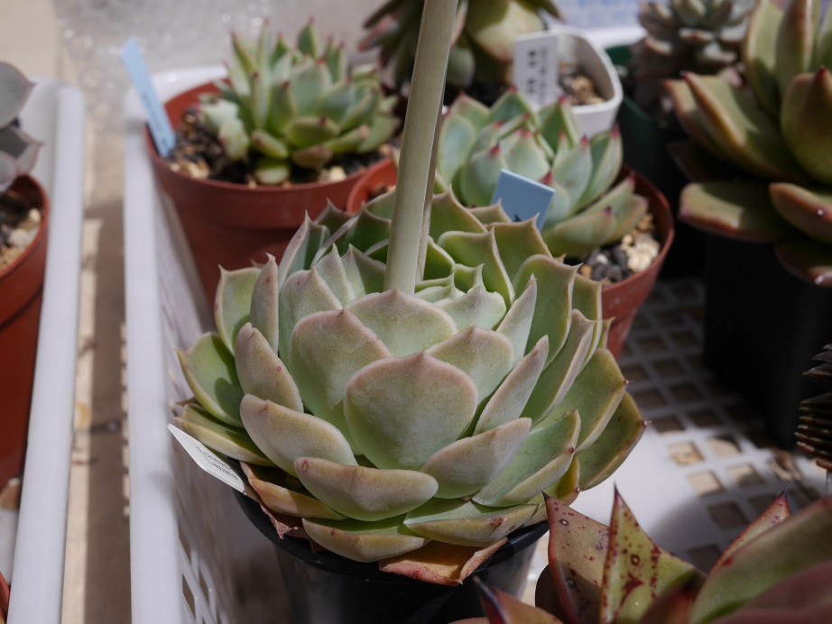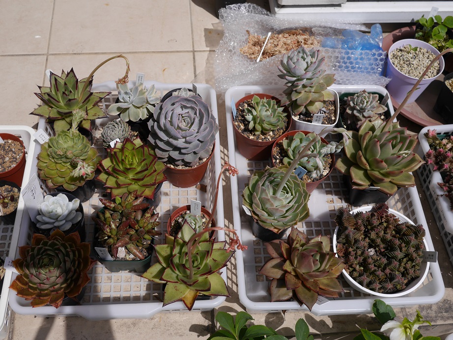 こんにちは 八連荘(パーレンチャン)といえば役満じゃないですか! どうでもいいか・・・ さて、霞んではいますが雲一つない快晴が続いています。ということで大地はカラカラ 空気は花粉や黄砂で埃っぽく微妙な状態です。一雨降ったほうがスッキリするね。 一週間以上雨が降っていませんが、へっちゃらな多肉たちは、遠慮ない直射日光を 浴び続けています。たまには水やるかね。 ![]() 晴れても雨が降っても屋根なし屋外なので、伸びたり汚れたり日焼けしたり何でもあり(汗 それでも生き残った株達なので気合が入ってますよw ![]() シムランス・ラグナサンチェスも野性的に育ち花芽を伸ばしています。 ![]() ↓ これは何だっけ? ![]() 今冬少し下葉を落としましたが、こちらも極めて丈夫。花芽もふたつ。 次に番外編。 ![]() 実生リトープス。1年半ほど経ちますが、やっと1センチ近くになっています。 肥料もやってないのに生き残っています。 ![]() デッキア。5センチくらいのカキ仔苗を購入して1年半。全く大きくなっていません(汗 根は出ているのですが、水やり忘れたり、鉢を蹴っ飛ばしたりと災難続き。 シルバーリーフなので生きているかどうかも分かりにくいw 生きてんのかな?? ということで放置多肉達でした。 今日で決算月が終わりですね。でも、何故か4月の方が忙しくなりそうで困っていますT_T 明日はゆっくりするかね・・・ ではでは ![]() にほんブログ村 ![]() 人気ブログランキング