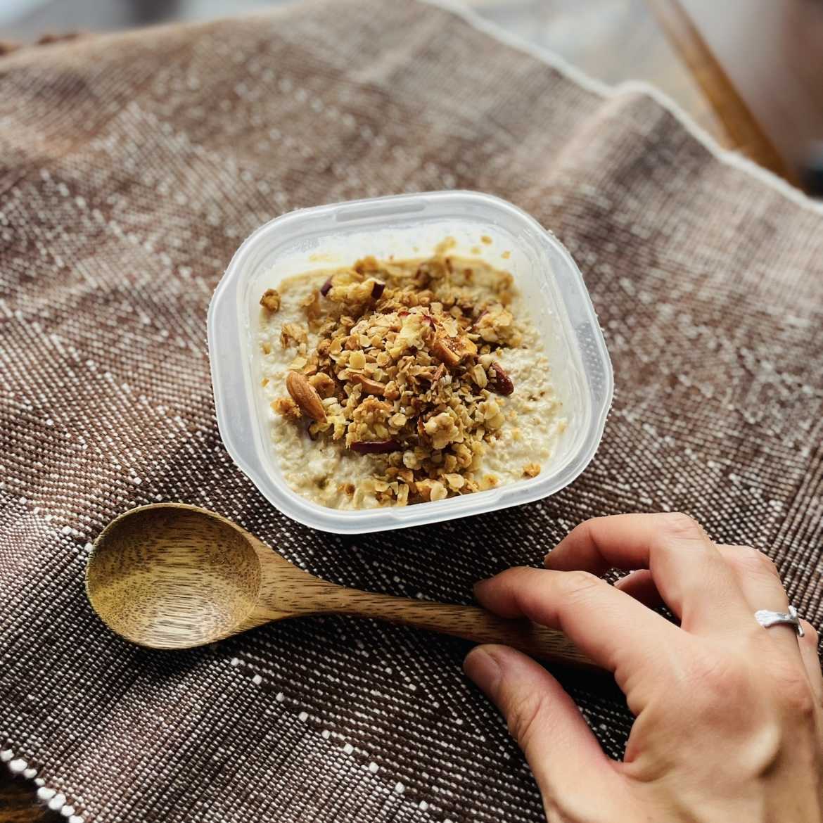 そして、今日は健康診断の日! ということで、午前は検診のため朝食なし。 私の最近のブログではよくオーバーナイトオーツが出てくるのでレシピ紹介しますね。 【容器】 【材料】 【作り方】 🏞️日中の過ごし方 MTGを終えたら昼食タイム。