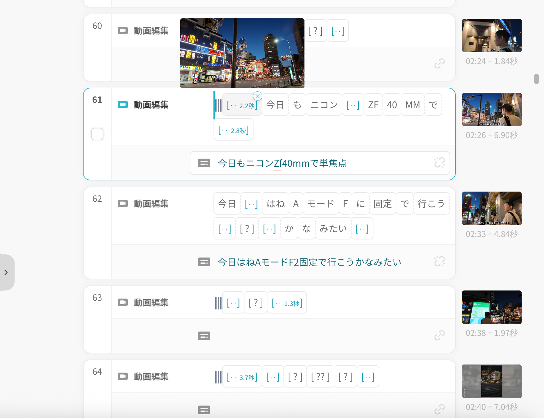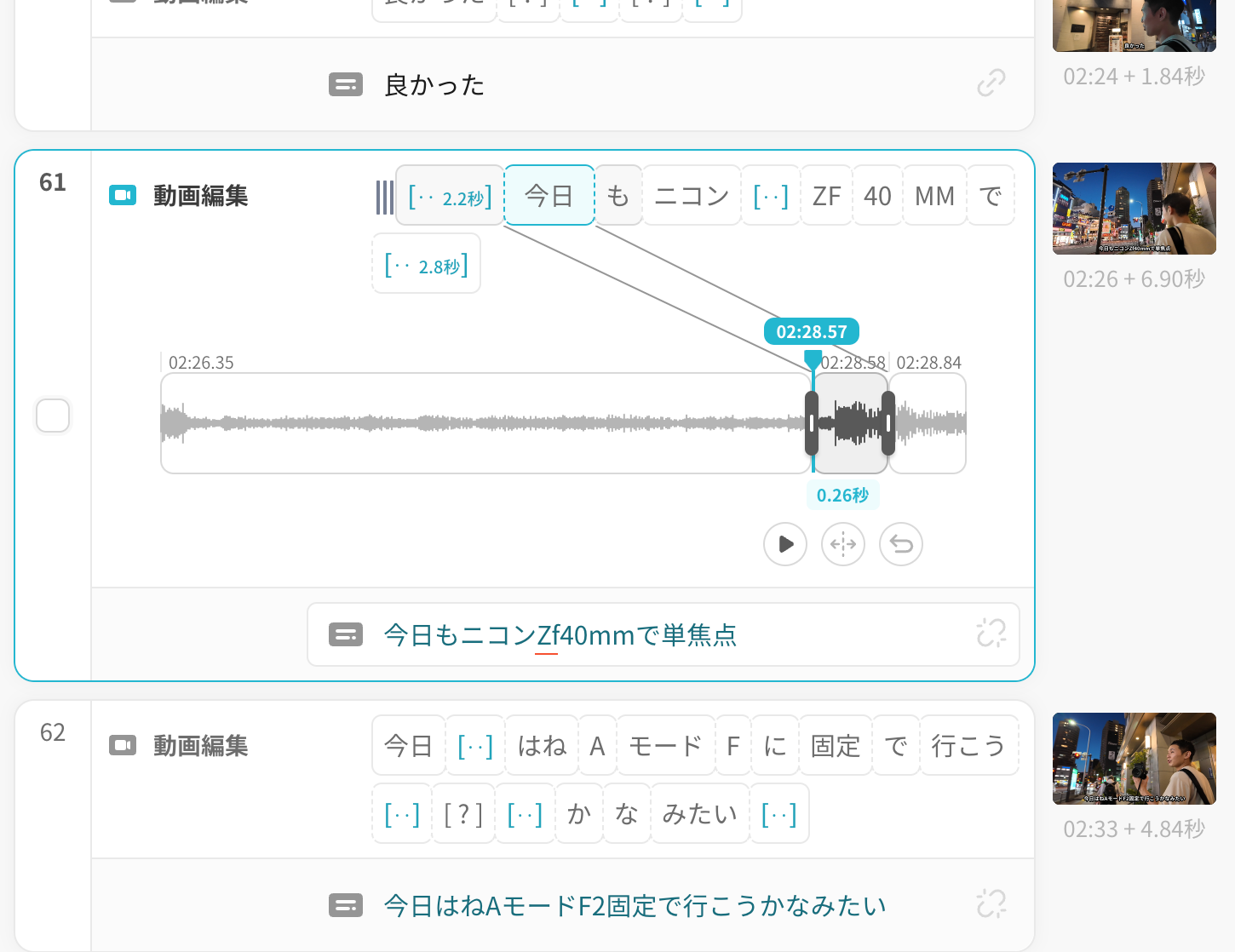 機能と操作のまとめ ・動画を読み込むと自動でテロップ作成 ・無料で使える(ただし冒頭に「VREW」のロゴが数秒入る) ・画面切り替えを自動感知し、クリップを分割してくれる ・読み込み時間の目安:13分の動画で約15分(体感はもう少し短い) ・テロップの誤字やズレは発生するが、修正は簡単 ・表示タイミングは「詳細編集」で細かく調整可能
