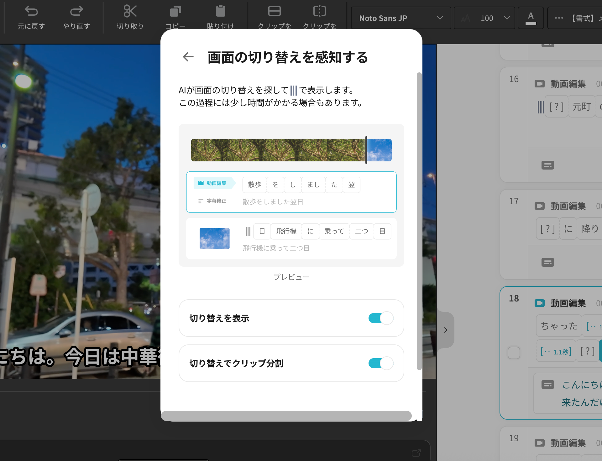 iMovie:動画編集(1本分の作成) アプリに動画を読み込ませると、自動でテロップを作成してくれます。 ありがたい機能のひとつは、読み込み時の詳細設定です。 もちろん、自動生成なのでどうしてもテロップのズレや誤字は発生します。 これが無料とは驚きですよね。