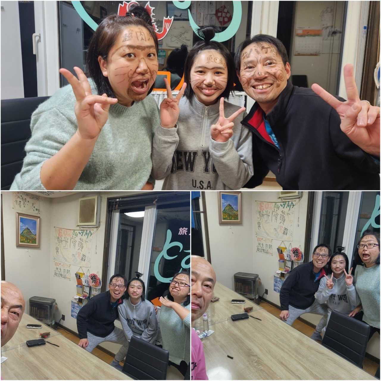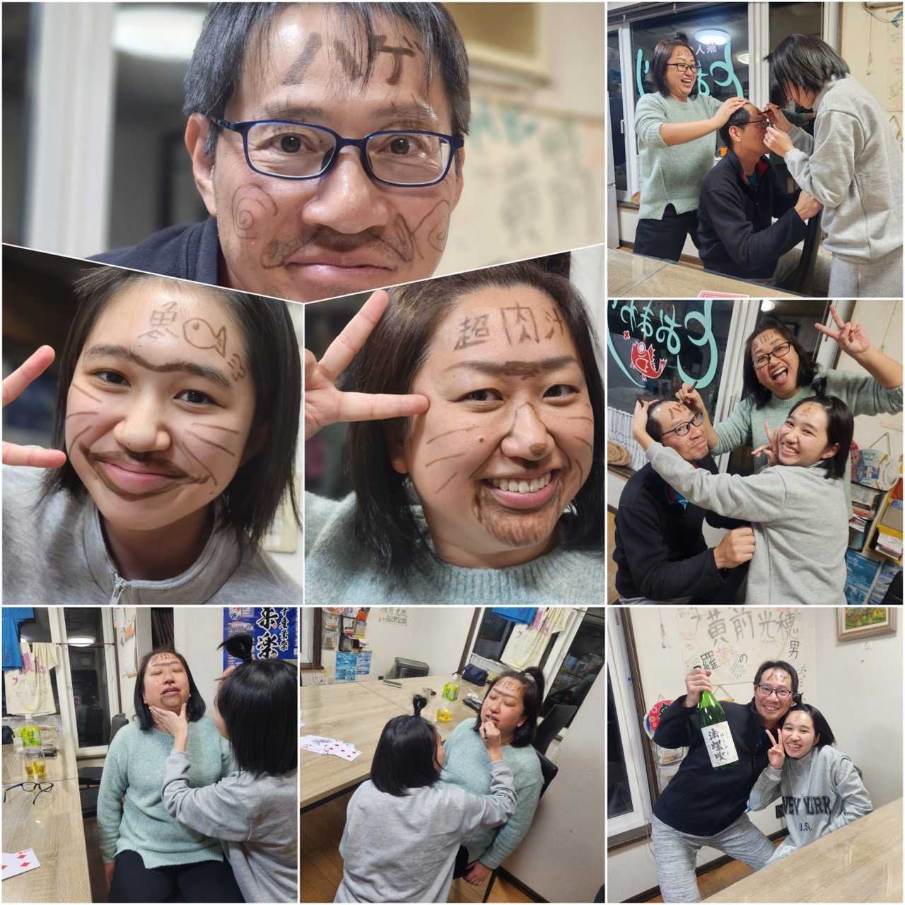 宿料金はこちらから クルーズ船+とおまわり宿泊 (1泊2食付) の セット料金についてはこちらから 昨日のお客さん 連泊のI家族です ^^ ![]() ![]() 昨日、野付半島に行って見たがっていたキタキツネが見れたそうです ^^ 夕食が終わるとトランプが始まりました 百均でビッグサイズのトランプとアイラインペンシルを買って来たそうです ん? アイラインペンシル?? ![]() 風呂に入って戻って来ると トランプはまだ続いていて、顔が・・・ ![]() ![]() 負けたら顔に落書きするシステムでした (^◇^;) ![]() 中1の娘にも容赦無しです (笑) ![]() お母さんのJちゃんが一番ノリノリ (笑) ![]() 俺も途中から参加したけど負け無し ✌️ ![]() 23時に寝るって言ってたのに結局寝たのは0時 💤💤💤 出発の朝、2年前に来てくれた時と同様に 雪遊びが始まりました ^^ ![]() ![]() Kちゃんが小学校に入る前から来てくれています 可愛くて良い子に育ってます ٩( ᐛ )و 明日からしばらく休館です