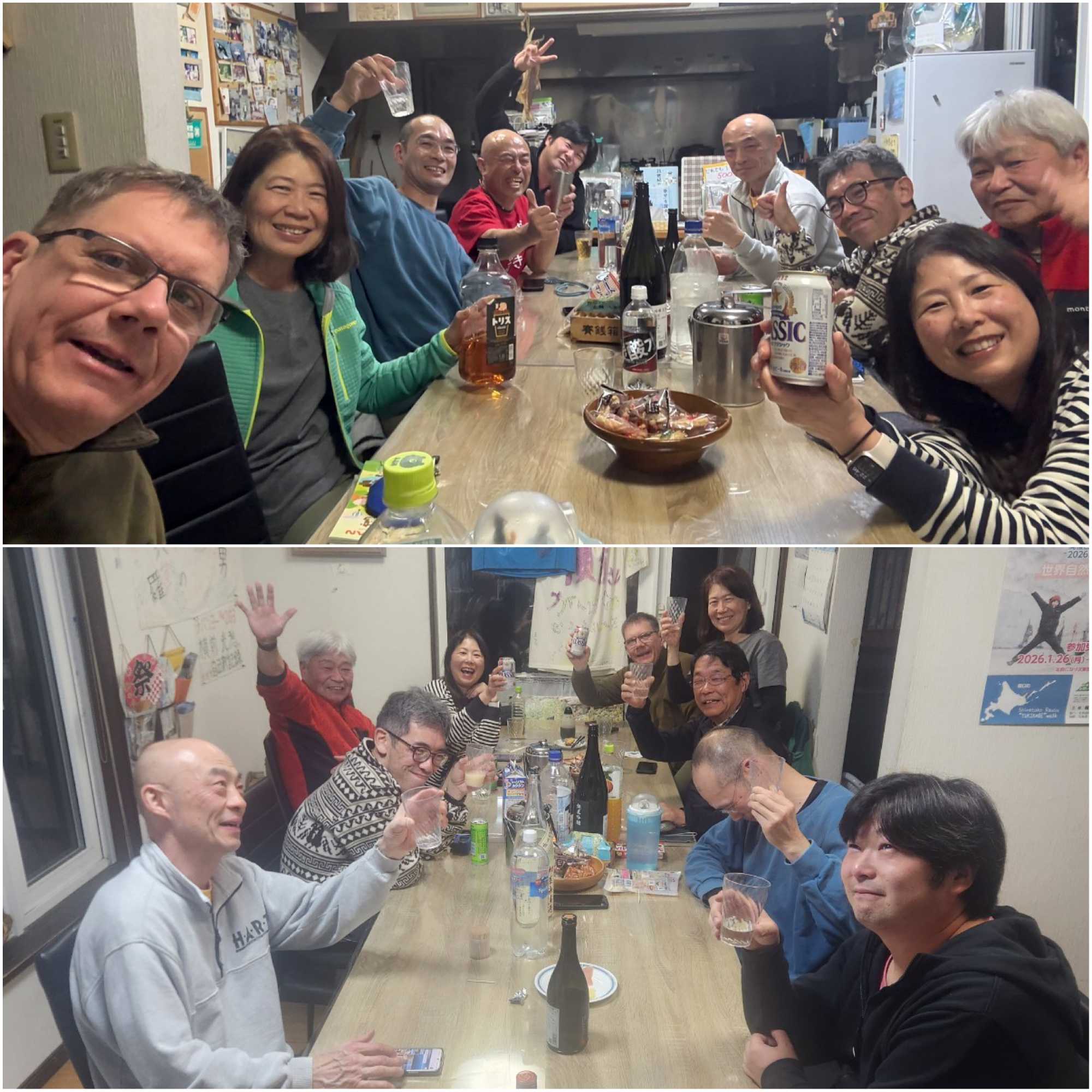 宿料金はこちらから クルーズ船+とおまわり宿泊 (1泊2食付) の セット料金についてはこちらから 今日の知床ネイチャークルーズのブログはこちらから 冬季間、とおまわりの駐車場は滑りやすくなっているので 注意して下さい m(_ _)m 昨日のお客さん 常連で◯◯なジョイマン(右2)とK山(左前)で明るいとおまわりに! 常連のNさん(右3)はこの時期は 知床ネイチャークルーズの早朝便で流氷,ワシ,日の出の写真を撮りに来ます ^^ Yさん(右前)は2回目の、Uさん(左2)は初めてのとおまわりです ^^ ![]() 飲み会 ![]() ![]() 手前は◯ゲテーブル ^^ ![]() 窓に映った3イケメン? ラストまでメンバー ![]() 完璧に感染したので今度来る時は◯ゲです 1:11 💤💤💤 天気は余り良く無かったけど午後から 登山口 ![]() ![]() 雪がかなり硬かったので急斜面を上がってみました ![]() 水平線に流氷 頂上 ![]() 最後までカチカチだったので、56分で上っちゃいました ^^ 今日のお客さんは4人です