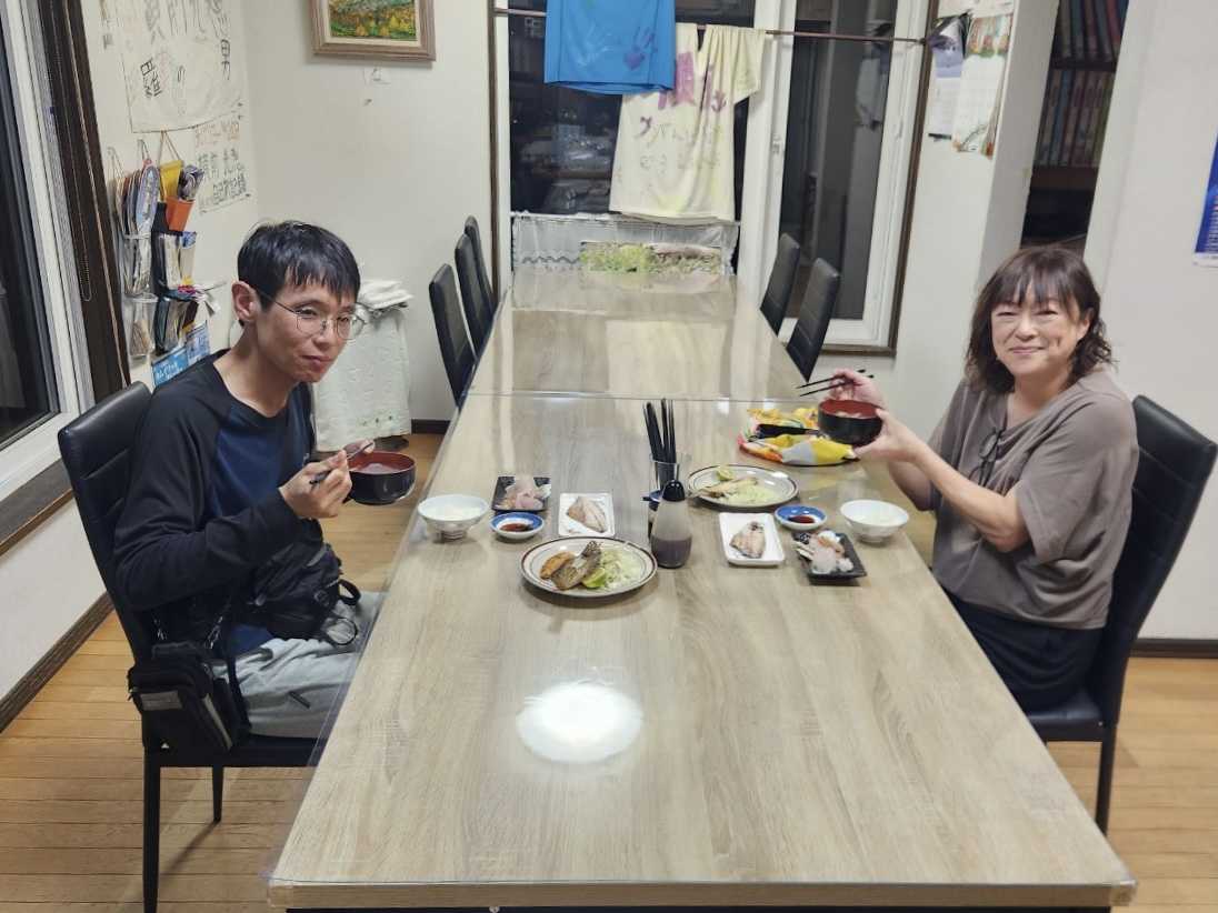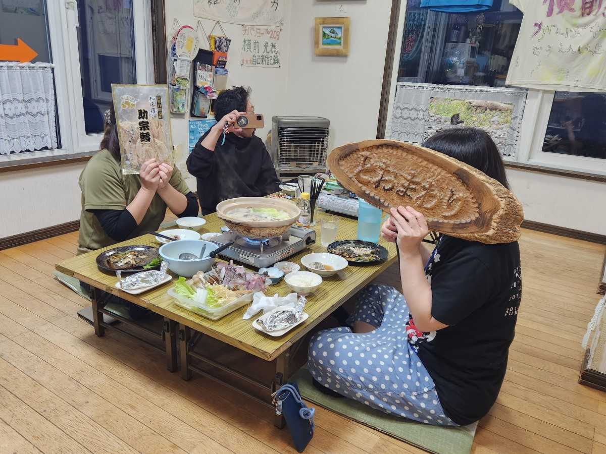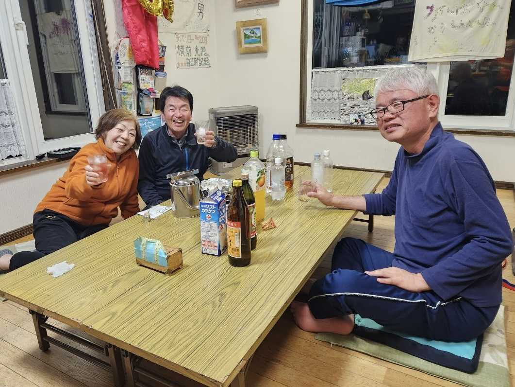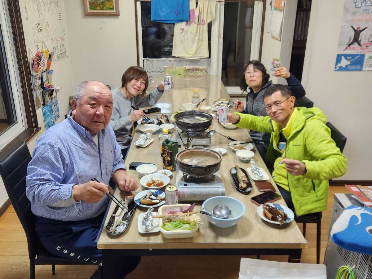 宿料金は1泊2食付き5,300円で現金のみの対応です 尚、20代の方は最大500円引き(10代の学生さんも含まれます)宿料金はこちらから 昨日のお客さん 全員男だけど、大学生が3人(左1,2,3)居るだけで 爽やかな風が吹いていました ^^ 常連のTさん(おっさん/左2)は今年3回目のとおまわりです 数日前に熊クルーズに乗った常連のOさん(おっさん/右4)は出戻りです飲み会4泊してくれたYさん(おっさん/左前)のラストナイトです ^^ラストまでメンバー0:11 💤💤💤 ゴジラ岩観光のMイの愛娘のミ〜ちゃんの運動会でした 朝から豪雨だったので「らうすぽ(体育館)』での開催になりました9:05に到着した時には開会式の最中でしたゴジラ岩観光のご一行さん徒競走、Mイ曰く『ミ◯◯は運動神経ないから・・』だけど、良い走りだったよ〜横ジ〜がお父さん役MイとRナの・・・パン食い競争年長さんのバルーン競技リレー『ミ〜ちゃん! 頑張れ!!』閉会式ミ〜ちゃんが代表でメダルを貰いました ^^ 皆、頑張りました ^^ そして、子供たちの可愛さに癒されました ^^ 大雪山系の黒岳で初雪です ^^ 羅臼も涼しくなりました ^^ 今日の知床ネイチャークルーズのブログはこちらから 知床ネイチャークルーズ + 宿泊プランについてはこちらから 今日のお客さんは7人です9月の予約状況SUNMONTUEWEDTHUFRISAT1 /2 /3 /4 /5 /6 /7 /8 /9 /10 /11 /12 /13 /14 / 15 /16 /17 /18 /19 /20 /21 /22 〇 23 〇24 〇25 〇26 〇27 △28 〇29 〇30 〇〇…とおまわり存続の危機 △…あと1~3人、急げ !! ×…満員御礼m(_ _)m 《熊クルーズ、とおまわりだけの特別価格》とおまわり1泊(2食付き)+熊クルーズ1航海(2時間〜2時間半)の料金 お客さん1人での乗船+1泊 (2食付き)・・・・・15,500円 お客さん2人での乗船+1泊 (2食付き)・・・・・13,500円(1人) お客さん3人以上での乗船+1泊 (2食付き)・・・12,500円(1人) 詳しくはこちらから 夏の各種ツアーについてはこちらからとおまわり水産からです (全ての商品は税込/送料別) 令和6年の4月よりクロネコヤマトの送料が値上げしました新料金はこちらから ・羅臼産開きホッケ 中 (2枚入り) … 1,680円 大 (331g〜399g) … 1,200円 特大 (400g以上) … 1,500円 ※ 真空パックが切れている場合がありますが品質は変わりません・イカの塩辛(190g 瓶詰め) … 1,200円 保存方法は要冷凍(−18℃で保存して下さい)絶賛販売中 ・イカの一夜干し絶賛販売中 ※ 藁縄で干すので藁がついている場合もありますので予めご了承下さい M (160g〜199g)・・・・・・・700円 L (200g〜249g)・・・・・・・950円 2L (250g〜299g)・・・・・1,200円 ・山漬け鮭・手ほぐしフレーク 絶賛販売中 (120g/瓶詰め) ……… 900円 (160g/瓶詰め) … 1,100円 ・めふんの正油漬け (190g 瓶詰め) … 900円絶賛発売中 ・天然羅臼昆布(キズ) (2枚入り,海鮮工房) (販売時期 通年) … 1,400円(5個まで送料600円) 絶賛販売中※キズ昆布なので天然物でも格安で紹介しています。お買い得です。・イバラガニの足(2kg 冷凍)・・・19,000円 ・タラバガニの足(2kg 冷凍)・・・27,500円 ※ 在庫は持たないので値上がりと売切れの可能性もありますので とおまわり水産までお問い合わせ下さい・カバノアナタケ 500g … 3,000円 1kg ……… 5,000円 採った物を数日間天日干しさせての発送です 皮や木が付いている場合があるので相場より安く設定しています カバノアナタケについてはこちらから 注文方法並びに各種問い合わせ メール toomawari.suisan★ezweb.ne.jp (★を@に代えて下さい) 電話 (0153)87-2808 FAX (0153)87-3913 にてお願いします とおまわり水産その他の商品はこちらから「幸せ」を背負って 積雪期単独北海道分水嶺縦断記 2022年の厳冬期に北海道分水嶺ぶんすいれい 670kmを63日間で単独縦走した野村良太のむらりょうた 北海道大学のワンダーフォーゲル部のOBで通話『オレンジ』(オレンジ色が好きだから) 大学に入学してから登山を始め、部長も務め 現役時代も卒部してからも、とおまわりに良く泊まりに来てくれました ^^「幸せ」を背負って 積雪期単独北海道分水嶺縦断記とおまわりでもサイン入りで販売中です オレンジが縦走中に地形図の裏面に書き記した日記を柱として これまでの登山を振り返るルポルタージュです 北大ワンゲル部での登山との出合い、山仲間との登山と単独行の目覚め 一冬での知床・日高の単独縦走 そして北海道登山の総仕上げとしての北海道分水嶺縦走を達成するまでを綴る本です定価:本体 1,600円+税 絶賛!販売中!!21世紀の日本地図 この本は2022年の6月に日本一周歩き旅の途中で 泊まってくれた平井佑樹君が歩き続けた984日間で 見て感じた日本をまとめたガイドブックです2021年5月12日から2024年1月20日までの984日間、歩いて日本を旅していました。旅を終えたとき、すばらしい旅の出会いと美しい景色が、この時代に確かに存在したことを残したい。そんな想いが湧き上がりました。自然災害や後継者不足、さまざまな理由によって今ある景色は変わっていきます。そして100年後の景色もきっと変わっているでしょう。けれども確かにその場所で誰かが生きていたこと、後世に残