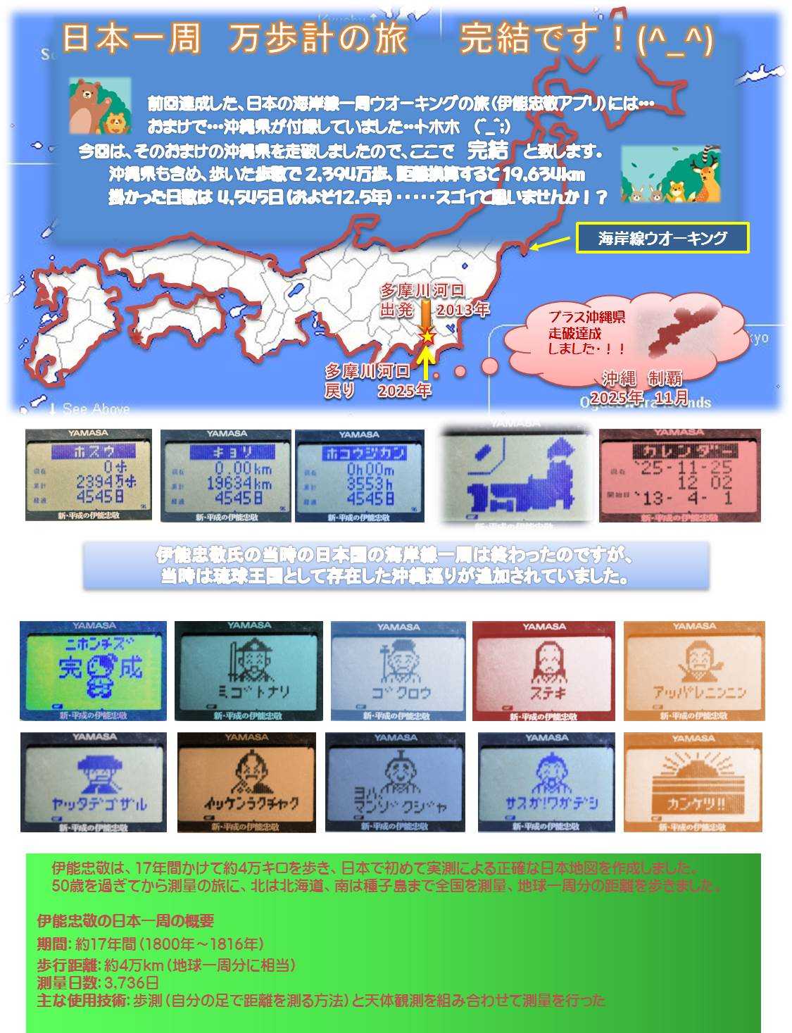 何故か・・・嬉しくもあり・・寂しくもあり・・・日本一周万歩計の旅も、あと2つを残すばかり・・・今回、神奈川県境に到着です。歩いた歩数2,280漫歩、距離換算で18,698km・・・歩いた日数が4,185日だから、一日5,400歩平均・・・4,185日って・・約11年になりますね・・・よくぞ・・続いたな~(^_^;) なお、この歩数はあくまでも 歩数計を付けてウオーキングという時だけで、日常の生活歩数や外出・旅行等は含まれていません。たかがウオーキング、されどウオーキング・・・ みなさんも目標を立てて”ウオーキング”頑張ってくださいね。(^_^)さてさて、音楽は・・・江の島、鎌倉・・と来ると・・・やはり、サザンか・・・(^_^;)次は、チャコの海岸物語にしようかと思ったら・・・加山雄三さんが浮かんできました・・・(^_^;)前回ブログ リスト こちらも見て頂けたら幸いです・・(^_^)・スマホがこわれた・・・スマホ買い替え指南・錦秋の軽井沢(その2)・・・軽井沢 タリアセン・錦秋の軽井沢(その1)・・・軽井沢 雲場池の紅葉