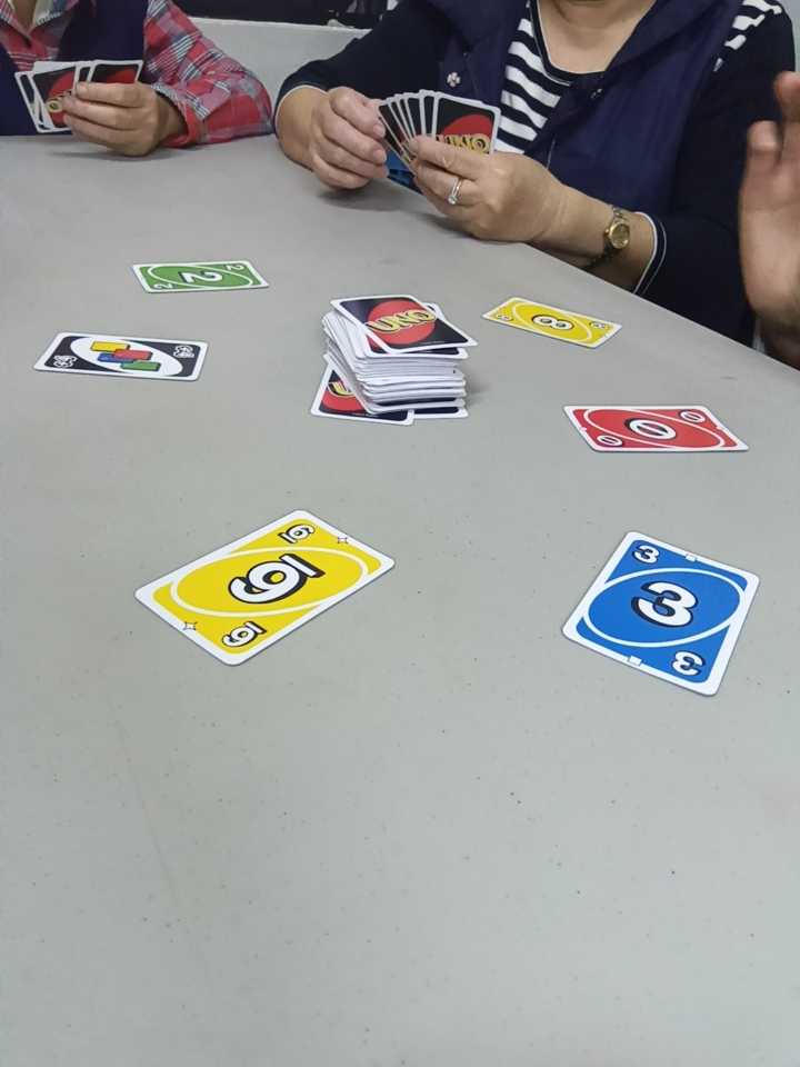 この日の活動は体操 と UNO でした。 本来は音楽の活動でしたが講師が来られなかったのでいつも参加しているボランティア の方が 講師となって指導していました。 認知症協会が公開している簡単な体操をみんなでしました。 後半は 通常 のUNOをまずしました。 その後はグループごとに 裏向けたカードから指定の数や色を探し出すというゲームをしました。 結構 頭の体操になると思いました。