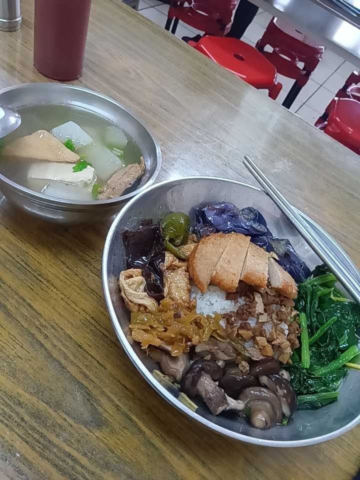 結局素鶏排の弁当と総合湯を頼みました。120元