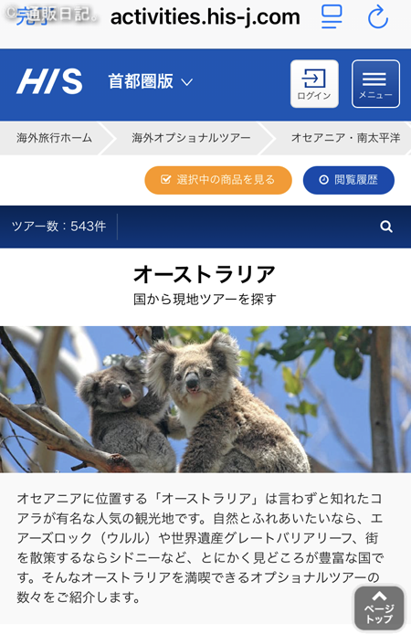 オーストラリアのケアンズを旅するにあたりまして、まずはこのaQuAs旅ナカアプリをインストールしてみようと思いましたのは、HISのオプショナルツアーの詳細を知りたかったからです。