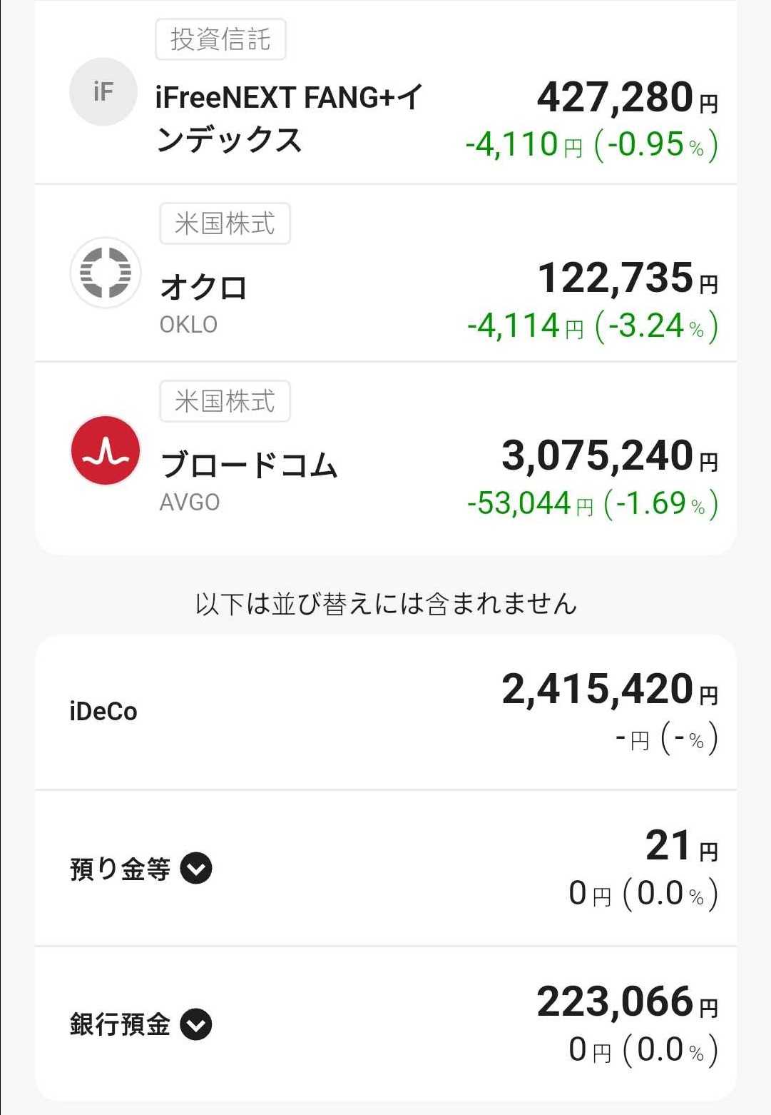 ![]() ![]() ![]() ![]() ![]() ![]() ![]() 1.為替の動きと黒田前総裁の発言 昨日は、為替は大きく変動せず154円近辺を維持。しかし確実に円安傾向ですね。黒田『前』日銀総裁が、「1ドル120~130円に向けた円高進行になる」と述べていますが、いかがでしょう? 資産の99%が米ドルな私のポジションでは、当然ながら大反対です。まぁ、現役総裁の発言ではないということで、私は話半分として受け止めています。ですが決してゼロの話ではないでしょう。為替だけで資産が2割3割減るような世界もありうるものと、頭の片隅に入れておきます。 2.主要指数と私の成績 主要指数は増加。NASDAQ100は0.48%増でした。しかし私の資産は微増にとどまり、結果として指数に負ける形となりました。特にブロードコム(AVGO)の下落が目立ちます。それでも気にならない安心感がブロードコムにはあります。やはり私は大企業が好きなのです。 私より遥かに優秀な人たちの集団が、膨大な規模の資本を用いて業績を上げる。私はその利益を享受する、なんと甘美なことでしょう。 3.夢株の現状と成長 対して夢株はどうでしょう。PLTRなどは当時「夢株」として買い増したものですが、現在は+569%の利益率となり、もう夢株卒業状態です。 他の銘柄はどうでしょう。将来の100倍、1,000倍を見込んだそれらは、結構長くも保有しているIONQとARQQが含み益を育ててきたところです。 4.夢株3兄弟と投資スタイル 一方で最近手を出した夢株3兄弟(OKLO・IREN・NBIS)は、現状では含み損状態。面白い業務内容だったり魅力はあるからこそ保有しているのですが、私が買うころにはすでに高値圏ということもあり、致し方ないところではあります。 私はやはりトレードには向いていません。私はトレーダーではなく、株の所有者でしかないのです。コレクターといえば少し格好良くなりますかね?でも、管理力はないので、せいぜい個別株は10銘柄に限定したいところです。個別株10銘柄+投資信託、これが私のスタイルの基本となるでしょう。 どうにか年内までに夢株3兄弟の飛躍を見たいものです。 最後までお読みいただき、ありがとうございます。 記事が少しでも参考になった、共感できたと思っていただけたら、広告リンクをクリックしたり購入してもらえると嬉しいです。 【公式 たねや】楽天限定 銘菓詰合せ(コンパクト便) 同梱不可 送料無料 自宅用 お手軽 お菓子 和菓子 羊羹 ふくみ天平 最中 たねや饅頭 栗饅頭 詰合せ 詰め合わせ 個包装 定番商品 人気商品 はじめての方おすすめ お試し お試しセット おためしセット 本生羊羹 水羊羹 お気に入りの記事を「いいね!」で応援しよう
