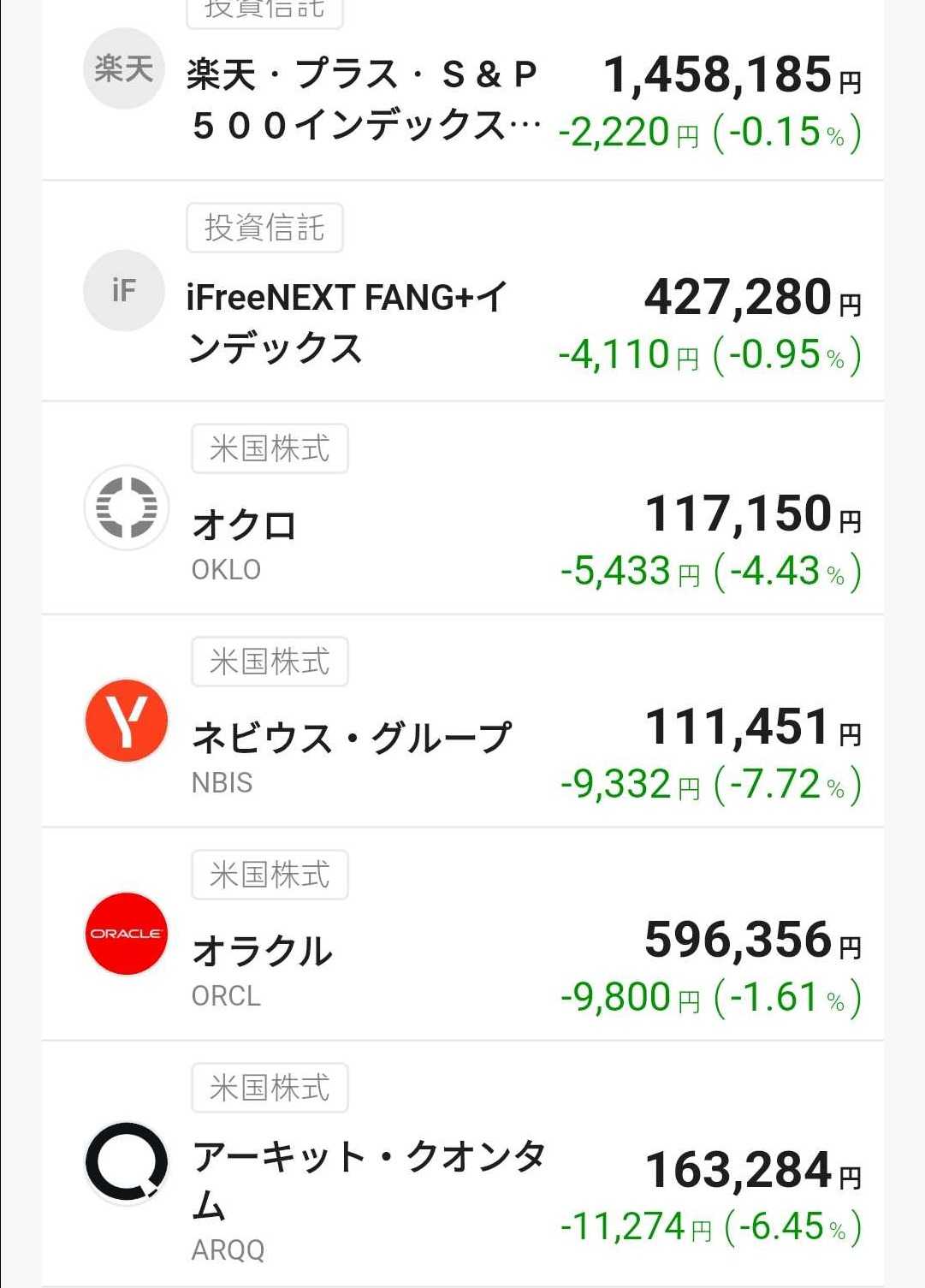 こんにちは、みなさん! 昨日も市場は賑やかでしたね。 今日も定番の運用成績をお届けします♪ ![]() ![]() ![]() ![]() ![]() ![]() ![]() 昨日は為替がわずかに円安方向へ。主要指数はダウ平均を除いて上昇基調でした。 私の資産全体は+116,527円(+0.69%)と、NASDAQ100を少し上回る成績に。 でも、所有銘柄を見ると明暗がくっきり! 上昇組も下落組も数%の動きで、なんだかジェットコースターみたいでした(笑)。 特に目を引いたのは… ・エヌビディア(NVDA):+103,553円(+2.37%) ・Direxion ブル2倍ETF(NVDU):+52,994円(+4.55%) ・パランティア(PLTR):+25,225円(+3.55%) テック株が元気いっぱい! 一方で… ・ビヨンド・ミート(BYND):-81円(-15.91%) うわっ、痛い…。これは私の衝動買い教訓銘柄として、来年以降も「反省銘柄」として保有し続けるかも?(苦笑) 今週のタロット占いによると、投資成績は今ひとつらしいので、ここは焦らず、 まったり眺めモードでいきましょう! Just keep watching! 今日も良い1日を! 最後までお読みいただき、ありがとうございます。 記事が少しでも参考になった、共感できたと思っていただけたら、広告リンクをクリックしたり購入してもらえると嬉しいです。 ネイチャーメイド スーパーマルチビタミン&ミネラル 120粒 【ネイチャーメイド(Nature Made)】 マルチビタミン お気に入りの記事を「いいね!」で応援しよう
