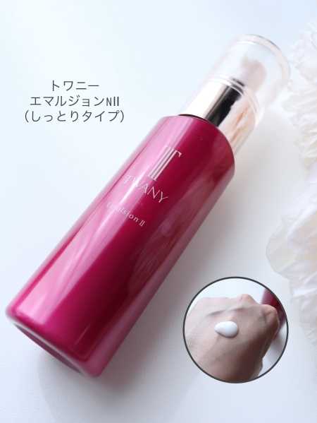 ![]() 商品名: トワニー タイムリフレッシャー トワニー ローションNⅡ(しっとりタイプ)【医薬部外品】 トワニー エマルジョン NⅡ(しっとりタイプ)【医薬部外品】 ![]() 【トワニー タイムリフレッシャー】<マッサージ・パック・美容液> こちらピンと弾むようなみずみずしいハリのある肌に導く誘導美容液🄬※ 透明でとろみのあるテクスチャ。 洗顔後すぐの肌に使用します。 1回量の目安が2~3プッシュ。 たっぷりと肌になじませ、肌あたりが優しくマッサージするとパックに変化します。 ローズブルームのみずみずしく上品な香りも好き☆ ボタニカルエッセンスCP-VS1※1配合で濃厚で優しいつけ心地が嬉しい。 ※誘導美容液は登録商標です ※1ソメイヨシノ葉エキス、カンゾウ根エキス、センブリエキス、サンショウ果皮エキス、ヒメノボタンエキス、グリセリン ![]() 【トワニー ローションNⅡ(しっとりタイプ)】〈薬用化粧水〉 こちらあふれるようなみずみずしいうるおいが角層深くまでしみわたる薬用化粧水だそうです。 ローションは1回量の目安が3プッシュ。 しっとりタイプですが、透明でサラッとしたテクスチャ。 ばしゃっと浴びれるようなさっぱりな使用感で絶妙! 前にタイムリフレッシャー使うと更に肌なじみがよいです。 べたつきが苦手という方にも使いやすそう。 爽やかで甘いフラワーの上品な香り、フローラルフレッシュの香りも大好きすぎ! 一気に贅沢な気分に上げてくれます♪ 暑い日にもすっきり使えていいですね。 ![]() 【トワニー エマルジョン NⅡ(しっとりタイプ)】 こちらシルクのように肌を包み込んでくれる薬用乳液。 使用量は1回1プッシュ。 真っ白でぽってりしたテクスチャ。 こっくりなめらかな伸び。 たまらな~い♪ ふわっとした使用感で肌摩擦を感じにくいです。 なので軽くマッサージするようになじませるのが好き♪ 軽くてべたつきが気になりません☆ 3stepの角層アプローチで、乾燥が気になるこれからの季節にも保湿効果を期待できそう♪ ライン使いがおすすめです。 スキンケアタイムが特別なひとときに♪ ひとつひとつのアイテムをじっくり丁寧に時間をかけてケアしたくなる☆ 濃厚で贅沢なトワニーのスキンケア☆ぜひチェックしてみて下さいね。 ![]() 提供元:株式会社カネボウ化粧品様 お気に入りの記事を「いいね!」で応援しよう