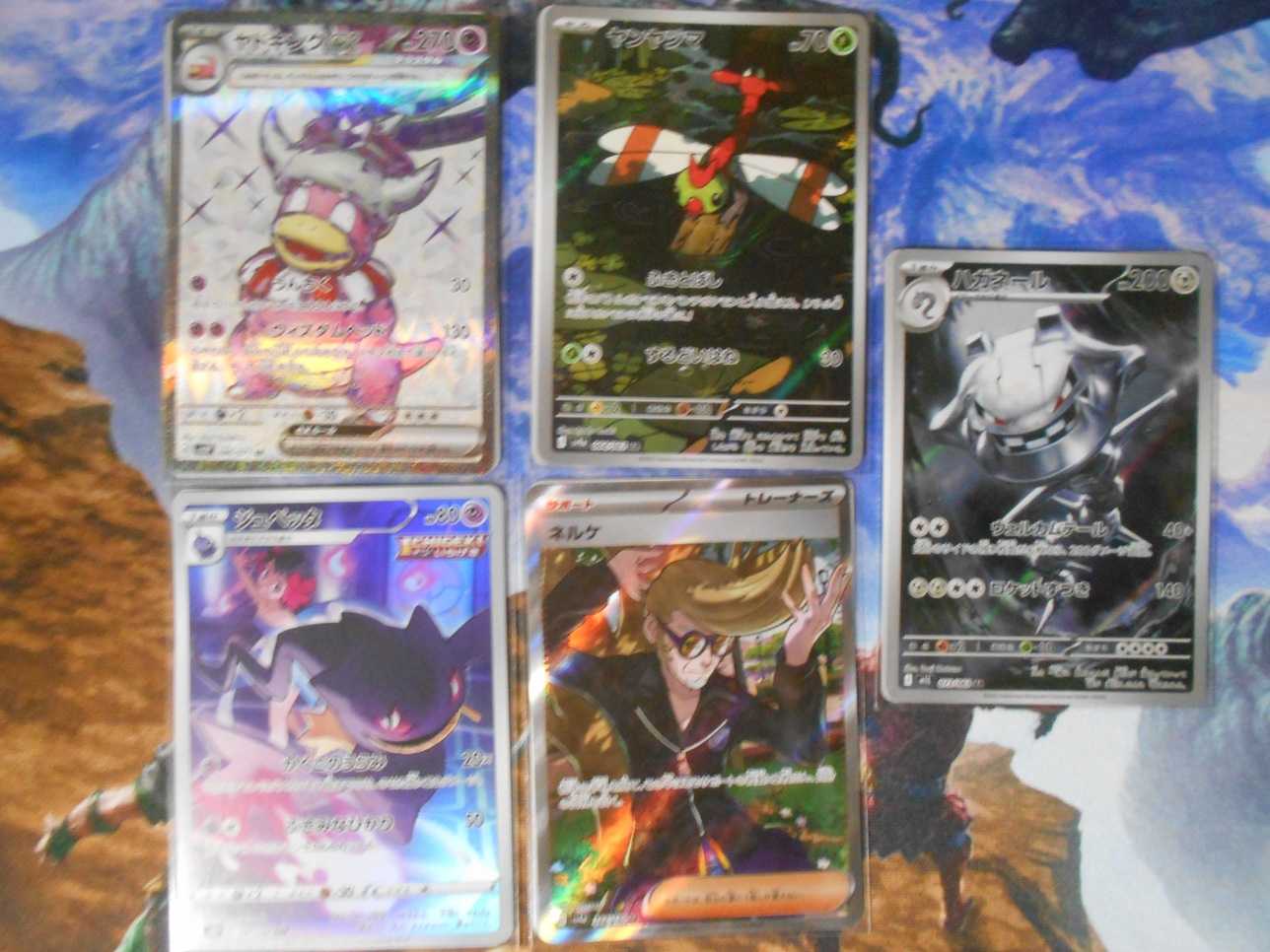 【大好評99円ポケカオリパ】第93弾バーゲンくじ【人気ポケモン大集合!ギラティナVの圧倒的イラストから根強い人気メガリザードンX exSAR、ブラッキーex・ゲッコウガex・エーフィVMAXにシロナのガブリアスex、さらにはミュウex・レシゼクSA…怒涛のポケモンラッシュ!ターゲットは、キミに決めた!?99円15000口】 ![]() というわけで、ホビビオリパ_(:3」∠)_ 普通に気になっていたポケカオリパに挑戦するんご。 内容はカード2枚入りで、表記のカード(BOXなどは一部引換券)もしくはSR系カード・SSR・AR・CHR・RR・RRR・S・R+ノーマルカード1枚で構成されているとのこと('ω')一口99円だから外れてもまあそんなものかと思うけれども、15000口だから100口買っても150分の1の確率で1枚当たるかもって感じの。うーん……当たり引きたい(´・ω・`)だって100口買ったから。せめて一つは当たってほしい、と願うんご。 最初の20口。 ダブレアが2枚。残りはレア_(:3」∠)_ この時点でちょっと絶望感(´・ω・`)もうちょいARとか増やしてほしいと思わなくもない。まあ15000口だからしゃあない部分もあるのかもしれないけれども。 次の20口。 ARが1枚。ダブレア4枚。残りレア('ω') うーん……まあ、こんぐらいの確率が精神衛生上いいのかなぁと思うん_(:3」∠)_ 3束目の20口。 SRが1枚。ダブレア2枚。残りレア。 なるほど。SRがきてちょっとだけ嬉しいけれどハズレっすね('ω') 見た感じSRとかARが入っていれば小当たり的な感じだろうか。一口以上のお値段になるので小当たりといえなくもない。まあ、ハズレといえばハズレでもある。如何せんダブレアやレアが多すぎるのでなんともいえないんご_(:3」∠)_ 4束目の20口。 SRとARが1枚づつ。残りレア。 結構絶望感が半端ない(´・ω・`)当たり来てほしい。ボックス引換券が欲しい。ほんとまじで。 ![]() ![]() 最後の20口。 5口目あたりでSRギラティナがきました。ぱっと見カッコいいのでこれはたぶん当たりと確信(*´ω`)SRモンスターだからそこまで高くなさそうと思いつつ、調べてみると、当たりでしたわ(*´ω`)それもど真ん中にある感じ。よくよく見たら大目玉って書いてあって、トップレアだったわ!(*´ω`)いやっほおおおおいい。最高ですわ。すわすわ。一気に元取れたんご。ありがとうおおおお(*´ω`) AR一枚きて残りレアのハズレだけれどそんなの関係ねぇ。ギラティナのおかげですべてが救われたんご(*´ω`)ポケカくじで初めて大当たりひいたんごおおおおお。 ![]() ![]() というわけで、BOXチャレンジとSRチャレンジ。 結果は御覧の有様。ハズレっすわっすわ(´・ω・`)ボックス欲しかった。 まあ、ギラティナきたので何でも許せちゃう感じなるんご_(:3」∠)_トップレアの力半端ないんご。 というか、トップレア引いてなかったら確実に大負けだったんご。 当たったSRやARでも大体2000円ぐらいの販売価格で、SRチャレンジもハズレ。ボックスチャレンジもハズレ。確実に大負けだったんご。ありがとうギラティナさん(*´ω`) なお、ギラティナさんはPSA10にはならなさそう。 まあオリパですししゃあないかな。ぱっと見綺麗で、白かけもないけれども、端っこのほうでちょっと擦り傷っぽい発見してしまったんご。これは本当残念ご。もしかしてカード見るときに擦れちゃった!? みたいに思わなくもないけれども、さすがにPSA10狙えそうなカードを入れるわけないねって思わなくもない。まあ、基本的にきれいですし私は満足ですよ(*´ω`)まあ、販売価格も買取値段もそこそこ落ちると思うのでコレクター需要はなさそうんご。PSA7か8いってくれればいい感じなのかな? って感じ。あの擦れっぽい傷でどこまで評価下がるのかは私にはわからないのでなんともいえないんご_(:3」∠)_ まあ、なんにしても初のホビビくじでトップレア引けたのはすごいんご(*´ω`)最高んご。 ギラティナで得たであろう利益分はホビビくじやってみたいんご(*´ω`)ひゃっほい。くじやるときに余裕があるって素晴らしいよね(*´ω`)ハズれても普通に許せちゃう感じがしますもの。 それにしてもラインナップ小さくて見づらかったから内容物見てなかったんだけれども、それが功を奏したのか物欲センサー回避してギラティナさんをお迎えできましたわ(*´ω`)うっひょー。 まあ、ボックス当たれとか当たり引きたいとかあったんだけれども、うん、何が当たるかは詳しく見たいほうが当たりそうな気がしてならないんご(*´ω`) ギラティナひいたときは当たりかなと思ったけれども、一番のトップレアだとは思ってなかったんご。ぶっちゃけ女の子SRが当たりというぐらいしかわからないんご。なので、トップレア引いたときの感動が調べた後っていう_(:3」∠)_動画とか取ってたらただの事故になってたんご。 そんなわけでギラティナ用のカードローダー買わないとな思う今日この頃('ω')お高いカードですからね、やっぱりちゃんと保管しないと。 ポケモンカード くじ アソートくじ オリジナルパック 5パックセット カードゲーム トレカ VSTARユニバース シャイ