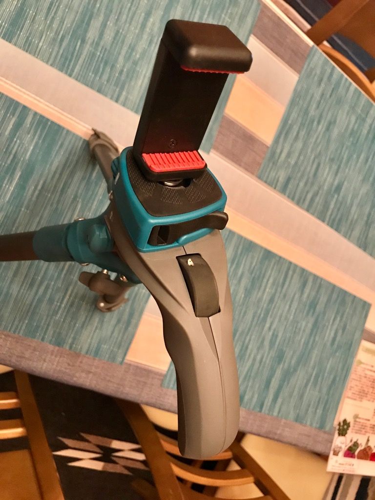 Manfrottoスマートフォン専用の三脚を買いました。畑仕事や植木の仕事でコンパクトカメラで撮影をしてきましたがこの頃は、iPhoneで撮影がほとんどになりました。 防水のカメラは一応持っていますがiPhoneの手軽さには勝てませんね。 ブログにアップするには本当に楽になりましたね。 この三脚はiPhoneでの撮影の為に購入しました。 楽天にはブルーがなかったのでブラックタイプのリンクをしておきました。 最後にブルーのタイプのAmazonのサイトのリンクを書いてありますのでご参考にして下さい。 COMPACTアクション三脚 フォト・ムービーキット ブラック MKCOMPACTACN-BK [マンフロット 三脚 manfrotto 撮影機材 アウトレット] マンフロット スマートフォン用三脚アダプター ![]() ![]() ![]() マンフロットのスマートフォンアダプターは非常に良く出来ていてこのアダプター単体で立たせることが出来ます。 この下についているManfrotto COMPACTアクションシリーズ用 クイックリリースプレートを以下の穴に差し込んでロックします。 ![]() フォト ムービー兼用雲台の縦についているダイヤルで運代の位置をフリーにしてから固定しているiPhone側に動かして雲台をロックします。 これが非常に良い使い心地です。 ![]() 左側についているビデオカメラとカメラの切り替えが出来ます。 通常はビデオカメラの方で撮影しています。足で水平をとってしまいますので・・・・ ![]() なれると撮影のセッティングまでの時間が本当にスピーディーに行えます。 ![]() 使用しているのはiPhone7でケースごとつけてもまだ余裕があります。 取り付ける時はかなりバネがきついので安心してスマートフォンをつけておけますよ。 ![]() こんな感じに付けて使用します。 ![]() 耐久性はわかりませんがかなり弱そうな足です。(笑) ロックをしないとかなりぶらぶらです。 ロックすればそれなりの強度はありますよ。 耐荷重 1.50 Kg 商品素材 アルミ 縮長(cm) 44 cm 全高(EVあり) 155 cm 最低高 44 cm 雲台タイプ グリップ式 ハンドル ハンドル1本