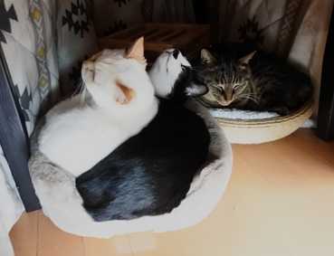 次は寒暖差の季節 正月にひいた風邪がまだ治りきっていないうらねこです さて、昨日帰宅したところ 思わず「!!!???」となる光景が目に飛び込んできましてね ![]() 何かというと 空いたお菓子の入れ物に、いつものよりちょっと美味しいカリカリを入れていたもの え? なんで? 落とされるのはともかく なぜフタが開いている??? 回して閉めるやつですよ? なんで開いたかはともかく 皆で代わる代わる首を突っ込んで貪り食ったことは間違いなく それを証明するかのように晩ご飯の催促がない (いや、飼い主の殺気を感じ取ったのかもしれないが) こんな時 真っ先に疑われるのはこのヒト ![]() だっていろいろ前科があるでしょ! アンタでなければ ![]() 当然次は食い意地大王のキミ ![]() まあアンタは考えにくいけどね きっと残り物にしかありつけなかっただろうし しか~し! その後、物音に気付いて振り返ると ええ!? まさかデイさんだったの!? げっ現行犯逮捕じゃ~~~~~~~~~? しかし、頑張ってるけど開けられていない そりゃキツく閉めたから 朝はフタが緩んでいたのだろうか? なんだかイマイチ信じられない でも他の輩は手をつけようとしないし デイさんは今朝も挑んでいた(もちろん隠した) 限りなく黒に近いグレー ![]() 果たして本当のところは? 夜食はあげました