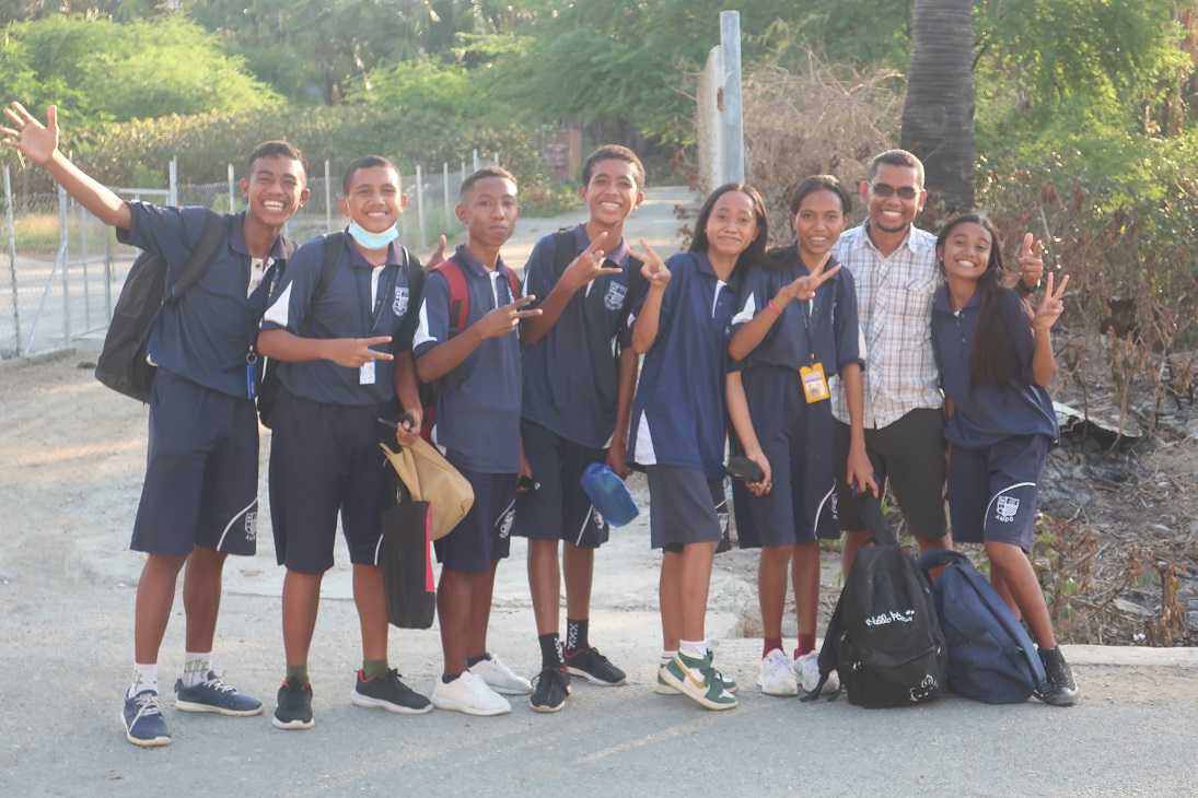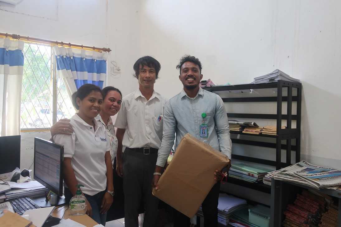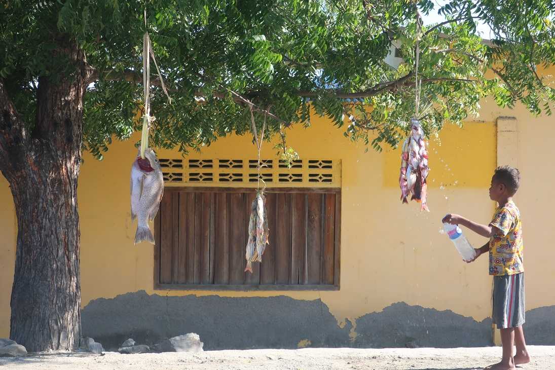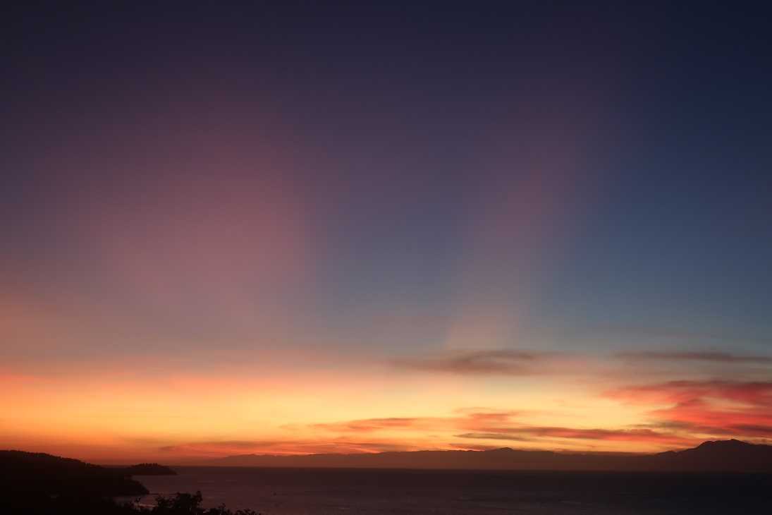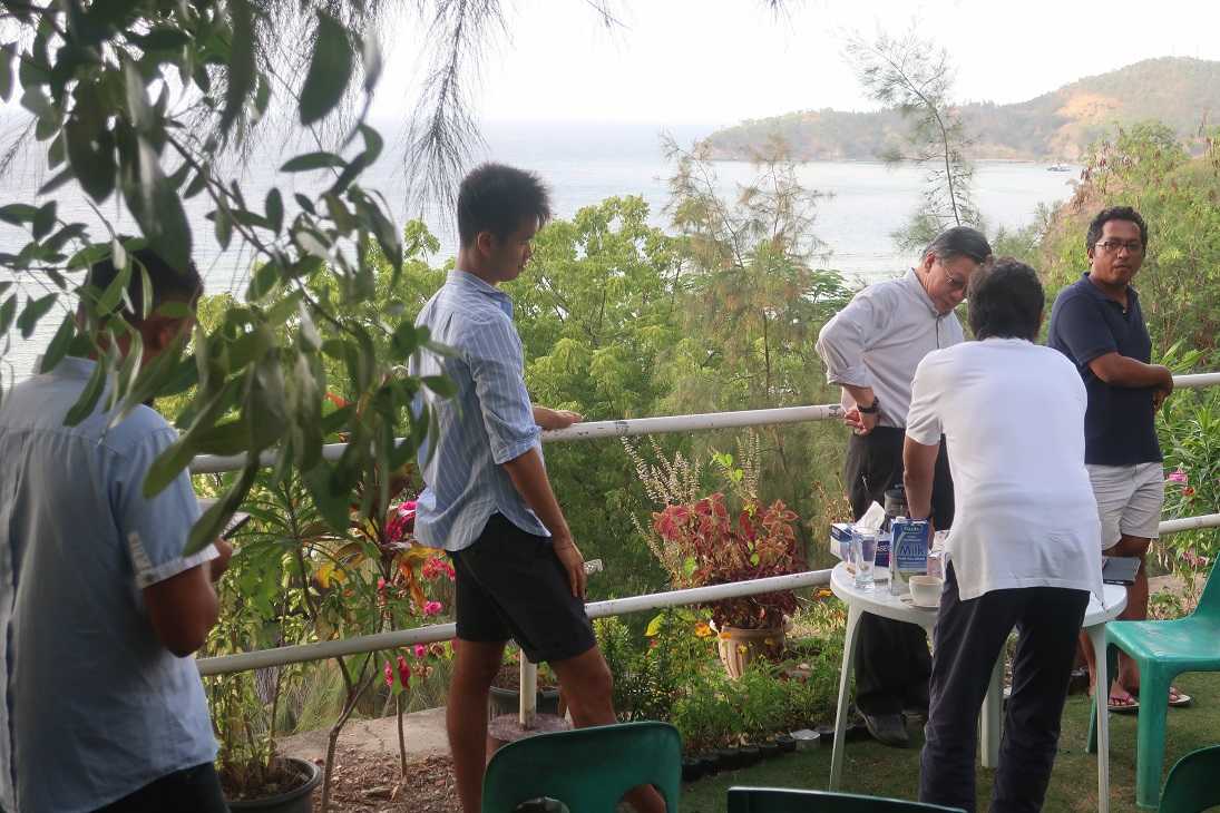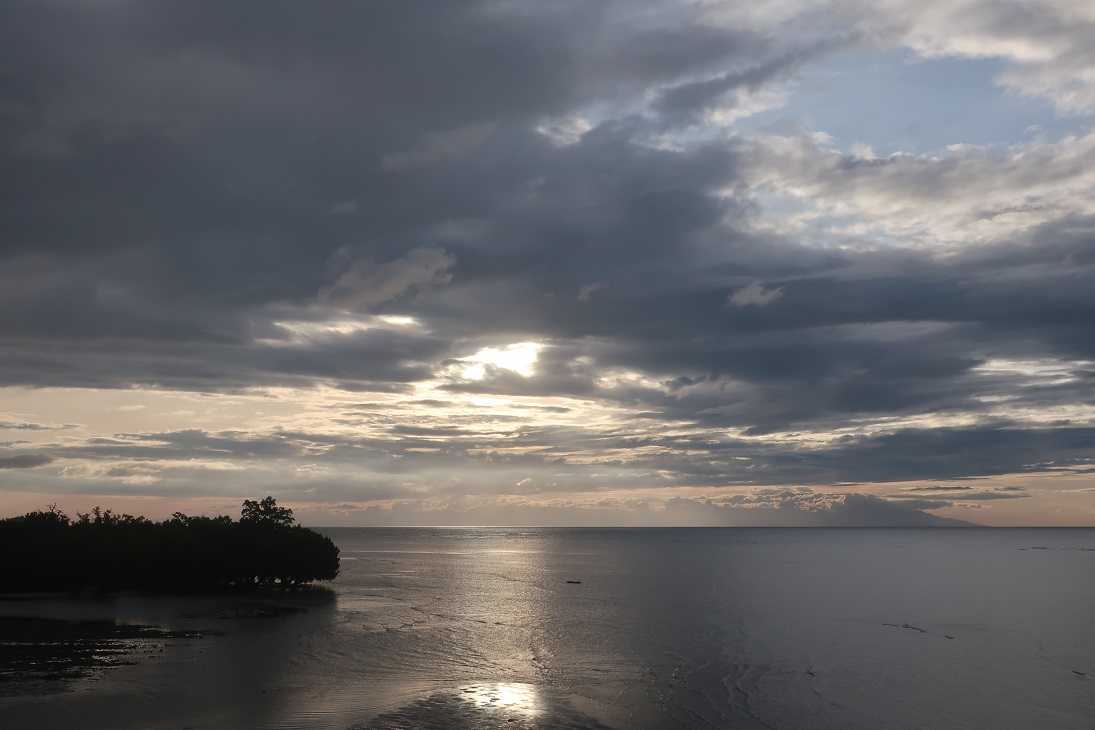 ほんらいは週4日、半ドン勤務のはずですが、きょうは夕方6時まで学校で仕事がありました。午後に会議が2つ。どちらとも校長先生から出席要請がありました。一つ目の会議は来年の教員人数について。パウロ先生が「来年は9人増員」要請をしたので、大驚き。もう一人の部長がお金がかかる生徒の泊りがけの活動をしたいといってので、それにも驚き。予算がありません。「Osan tama laiha, Osan sai mos laiha」(入金なくして、出金なし)と、大声で反論しました。2つ目の会議は、電力会社や建設会社、政府の役人の方がたがきて、公共工事にからむ土地問題。学校の管財担当として、出席しました。 ↑ そうこうして帰宅しました 水浴びをして、外をみると夕闇がせまっていました 向こう側の島影は、インドネシア領です