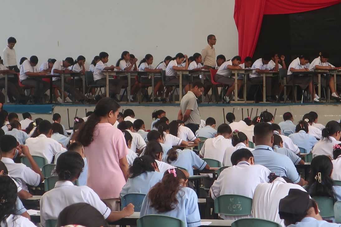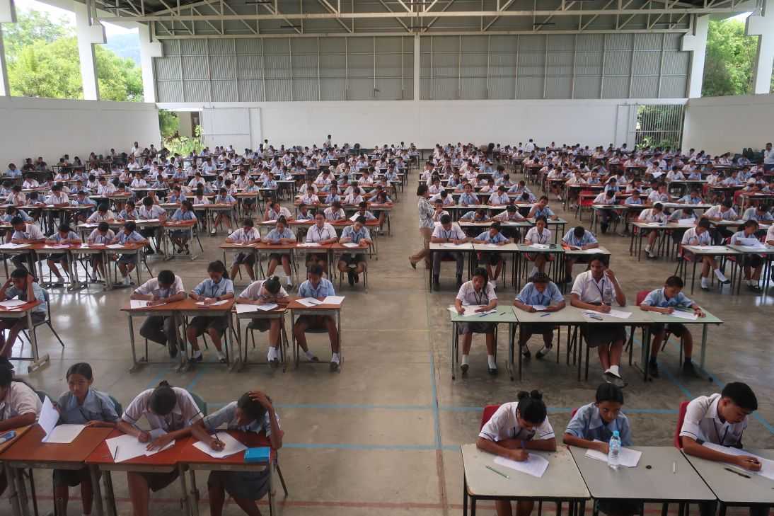 ![]() ![]() ↑ 体育館に机をあつめて、中1、2、高1、2の期末考査 中3と高3は、卒業試験が終わったので期末考査はありません ステージの上まで机を並べて生徒たちは受験しています ![]() ↑ ステージ上で試験をうける生徒たち ![]() ![]() ↑ 中学生(水色のシャツ)と高校生(白いシャツ)が交互に並んで座っています 機智に富んだカンニング防止策ですが、管財担当のわたしとしては、教室の机や椅子を体育館に運び込んでこんなことをやるのはぜひとも止めてもらいたいのです 試験が終わると机や椅子は決して元の教室には戻りませんし、机と椅子のサイズもバラバラになってしまいます しかし、多文化共生のために黙っていなければなりません お気に入りの記事を「いいね!」で応援しよう