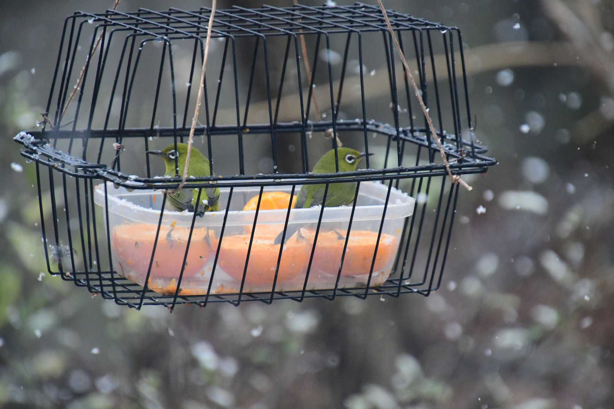 ただし、今日のブログは一昨日(2月7日)の午前中に降った雪の中の野鳥です。 7日の雪は最初ははらはら落ちてくる程度のものでした。 雪が写るか写らないか、という程度。('◇')ゞ ![]() まだ雪はほんの少し。 シジュウカラも忙しそう。 ![]() 雪が積もらないうちにエサをゲットしないとね。 ![]() コゲラは、ひたすら移動しながら木をトントン。 こちらもエサ探しです。 ![]() シロハラさんに出会った頃は、だいぶ降ってきました。 ![]() 雪の中でたたずむ姿がなかなか素敵。(*^-^*) ![]() 「なーにいってんの。カメラ持ってエサ取りの邪魔してんじゃないわよ。」といきなりこちら方面に飛んできて、そのままいなくなりました。('◇')ゞ ![]() 降りしきる雪の中でも寝ているカモたち。 ここからは庭の鳥です。 ![]() 雪が降ると、メジロ様のみかんレストランは繁盛。 といっても、たくさんのメジロさんが来るのではなくこの二羽だけが独占しているようです。 (以前、3羽目が登場したことがありましたが、追い払われました。) ![]() なんたって屋根付きですから。(#^^#) ![]() いつも以上によく召し上がっていらっしゃいました。(*^-^*) 今年はみかんがちょっと高めですが。 お気に入りの記事を「いいね!」で応援しよう