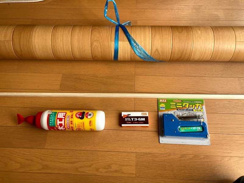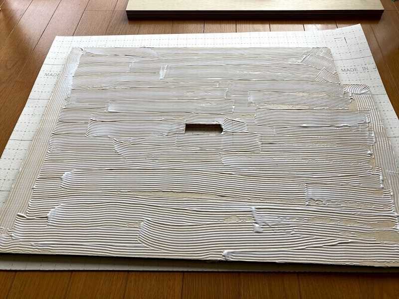 昨日と今日にかけてコンパネにクッションフロアを貼りました