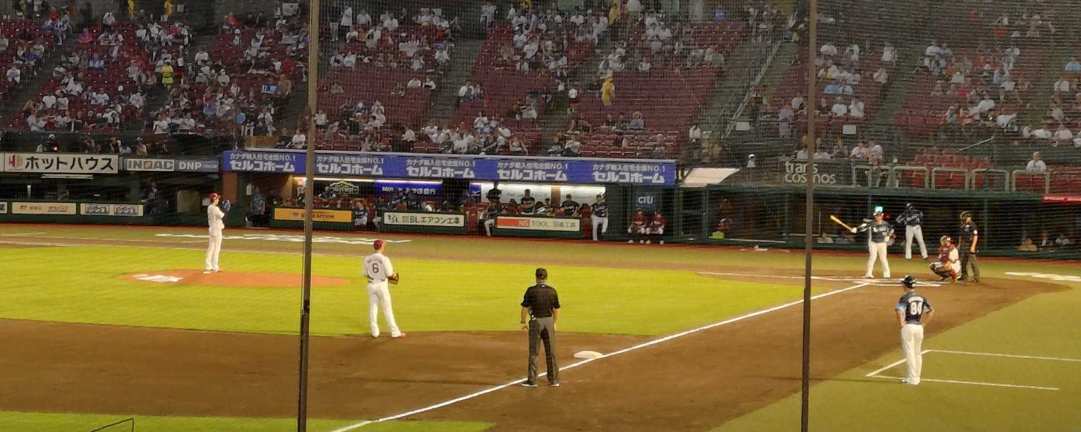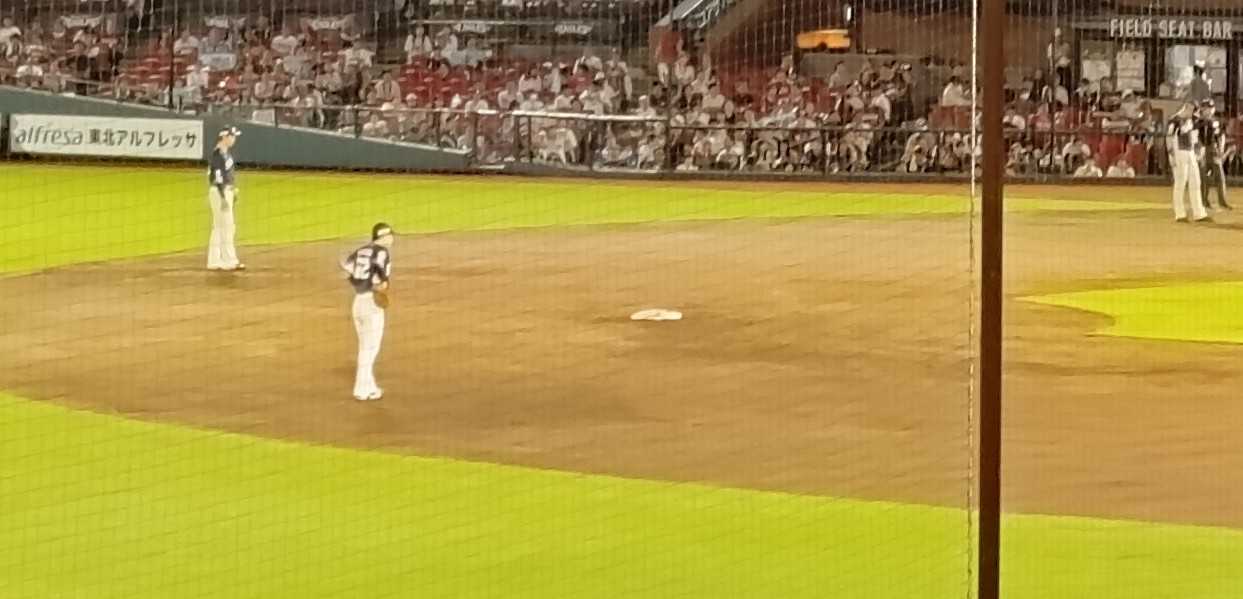 真夏の蒸し暑さはようやく和らぎ、過ごしやすい夜だった。 この日の座席はは三塁側のフィールドシート。内外野の守備の動きをグラウンドレベルに近い目線で感じられるシートだった。 ![]() 一番のお目当ては、これまで2試合連続完封中の西武の先発、今井達也投手。 ![]() しかしなんと、意外にも2回を投げ終わったところで降板してしまった。 初回からマウンドの土の状態を気にする素振りや、投げ終わった後のイライラしたような仕草などが遠目にも見えていて、調子が良くないのかな…とは感じていた。だけどそれにしても早い降板だった。 大リーグのスカウトがたくさん来てるとか、三試合連続完封を達成したらタイ記録だとか、周囲の雑音に集中を乱されたのかもしれない。 対する楽天の先発、岸投手も少しいつもとは違う立ち上がりに見えた。 ![]() 投球間隔が普段より長いように感じたし、それとの関連はわからないけど連打も浴びていた。 それが、キャッチャーが堀内から石原に代わると、ボールが持ったらすぐに投げる体勢に入るいつものテンポが戻り、これも関連はわからないけど、スコアボードにゼロが並び始めた。 僕自身、試合途中にキャッチャーを代えられる程選手層の厚いチームにいた経験がないこともあり、この交代には「おっ」と思った。そしてキャッチャーを代えることでピッチャーが立ち直ることがあることを知った。 結局先発投手として100球を投げ切った岸投手はさすがだと思った。 この日の三塁側フィールドシートからは、内野ゴロの捌き方、外野手の飛球の追い方などが良く見え、プロの守備力の高さに改めて感じ入った。 その中でもとりわけ、西武のショート、滝澤夏央選手のレベルの高さには目を見張った。 ![]() 身体は小さいのに足が速くて捕球も確実で肩も強い。動きがいつもキビキビしていて見ていて気持ちが良い。そんな選手だった。 試合途中でショートに源田が入り、滝澤はセカンドへ。楽天では村林と宗山が春先にショートの定位置を争っていたように、西武のショートのポジション争いにも凄いものがありそうだ、と思った。 この日、序盤から荒れ気味の試合で帰りが遅くなった。 プロ野球選手たちの守備力の高さに感動しながら家路についた。