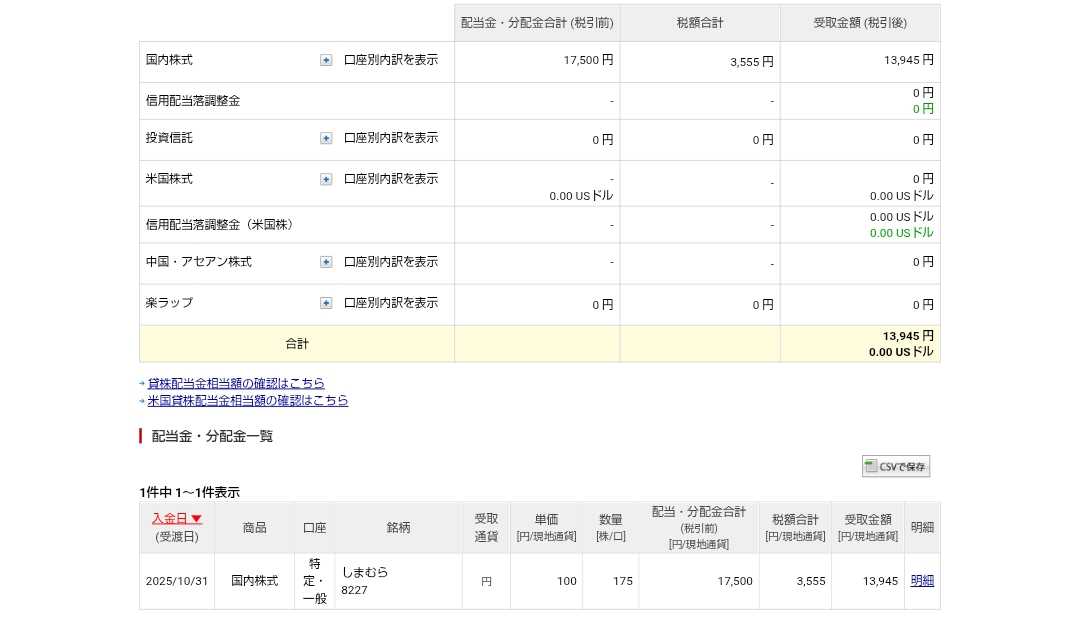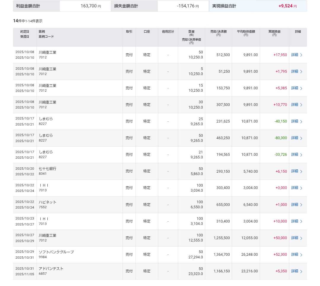 ![]() おはようございます☆ 10月の資産運用結果をまとめました(*´ω`*) 個別株投資 +9,524円 ![]() 配当金入金 +13,945円 ![]() 合計 +23,469円 しまむらの配当金いただいて… しまむらの大損切りをした10月でした。 配当金以上の損切り額… ガクガクブルブル(ー_ー;) それでも、川崎重工やソフトバンクグループでプラスに戻せたので良しとしましょう! ☆☆☆☆☆ 今年から使い始めた株式手帳。 ズボラ人なので、毎日は書いてないですが… 取引あった時の記録や、監視銘柄の決算発表日を書いたりして、まとめてます。 2026年版が予約開始になっていて… 今回の楽天お買い物マラソン中に購入予定☆ にほんブログ村 ![]() お気に入りの記事を「いいね!」で応援しよう