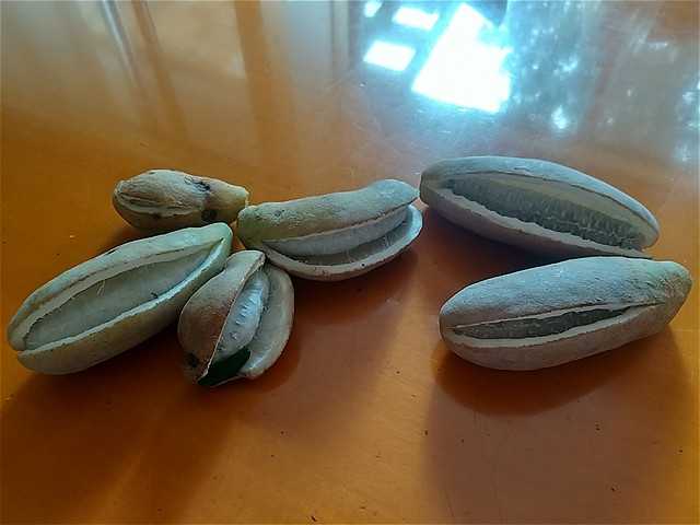 フェンスのアケビは、身が割れていた。昼食後に中身のちゅるちゅるを食べた。ほのかな甘みが和菓子のような感じ。