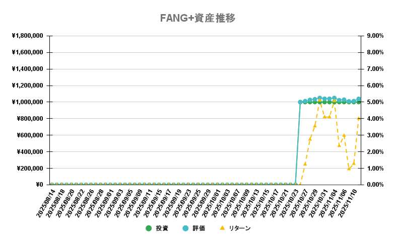 - 投資信託(インデックスファンド):iFreeNEXT FANG+インデックス(以下「FANG+」)