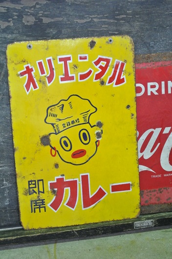 昭和レトロなオリエンタルカレー縦型両面の琺瑯看板、久々に出てきました、看板の中でも結構人気あります。 SOLD OUT