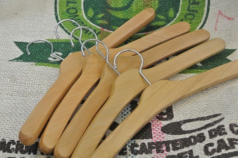 店舗用中古木製ハンガー大量入荷{さばくのに1年以上かかりそう)です、ブナ材のしっかりしたハンガー、5本セットで300円(W42cm) ★お知らせ★ 5月31日(土)は臨時休業とさせていただきますので宜しくお願い致します。