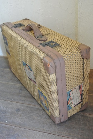 籐でできたビンテージトランク、味わい深い鞄です、何枚か渡航された時に張られたステッカーがそのまま残されてます。 SOLD OUT