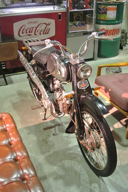 右からスズキ・ス-ジー、ホンダ・ロードパル、スズキ・ランディ、この時代のバイクは色鮮やかでメッキパーツが沢山使われて結構カッコ良いです。