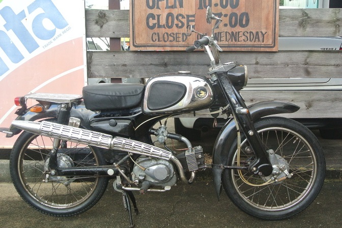 とりあえず、メッキのサビ落とし、ネジのサビ落とし、タンク内サビ取り、キャブレターオーバーホール、マフラー内の清掃、キーシリンダはずしカギを製作してもらい、オイル交換、新品バッテリー装着、95パーセント当時のオリジナルですが52年間のやれ感はずいぶんあります。交換部品、キャブとマニホールドの間のゴムホースとセレン整流機の2点。アイドリングも安定調子も良いです。壊れて放置ではなく、乗らなくて放置でした、元オーナーは現在ではおばあちゃんです。 SOLD OUT