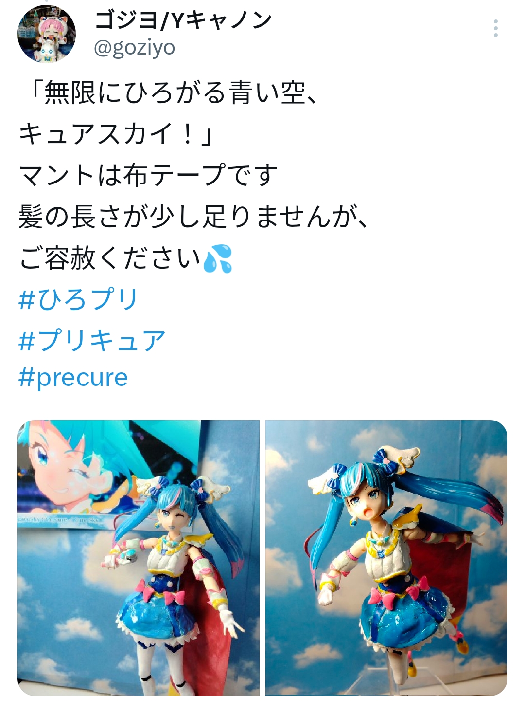 よりキュアスカイ、キュアプリズム無事完成! ![]() ![]() ![]() よく見るとマントの裏側に白い部分があるのに 気づきましたが、見なかったことに(笑) ![]() 撮影中スカイが倒れそうになったのをプリズムが 支えてくれるというソラましが発動しました♥ ![]() ![]() ![]() もっと色んな表情パーツ用意したいですね ![]() 今年最後の作品はこの二人となりました 最近ガンプラよりもガールズプラモのほうが 作る率高くなってますが、来年も両方作って いきたいのでぼちぼち頑張ります💪😉 皆さん良いお年を〜 お気に入りの記事を「いいね!」で応援しよう