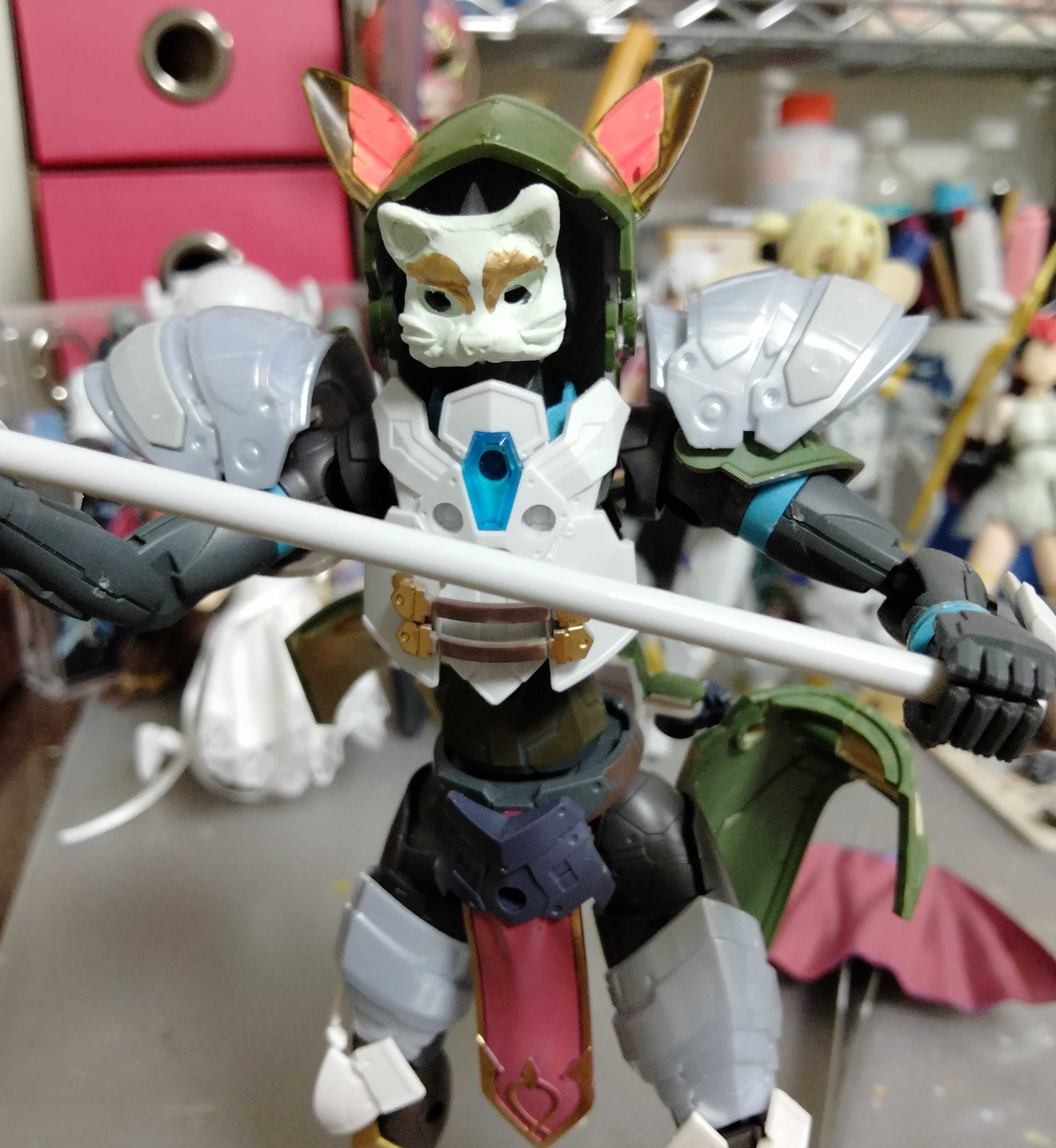 ![]() 「ケット・シー」 仮面の騎士団【マスケーラナイツ】 を束ねる騎士団長 ![]() 高齢男性である事以外謎に包まれ、 何百年と生きているという噂 あらゆる属性の魔法を繰り出せる ![]() ![]() 両手杖を棍術として使うことも得意 ![]() 猫仮面は、フィギュア用仮面の型を取って ポリパテで作りました ![]() 昔ヴェネツィア旅行で買ったこちらの猫マスクを 参考にしてますが、完全再現は難しいです💦 ![]() 杖の片方にある水晶 実は百均のデコシールのようなものです ![]() 同じ仮面の騎士団であるコルヴォと共闘 「無茶しないでくださいよ団長」 「年寄り扱いするでないわ〜」 ![]() 「イタタ、久しぶりに腰が💦」 「言わんこっちゃない」 ![]() ブレイブナイツとも関わっていく仮面の騎士団 こちらも団員増やしていきますよ~ ![]() 魔界の戦士ガルドとの会敵 「魔界の戦士か、やり合うのは何年ぶりじゃろ」 ![]() 「突然盾を出しおった、面白い魔法を使う」 30MF同士で戦わせるの久しぶりな気がします お気に入りの記事を「いいね!」で応援しよう