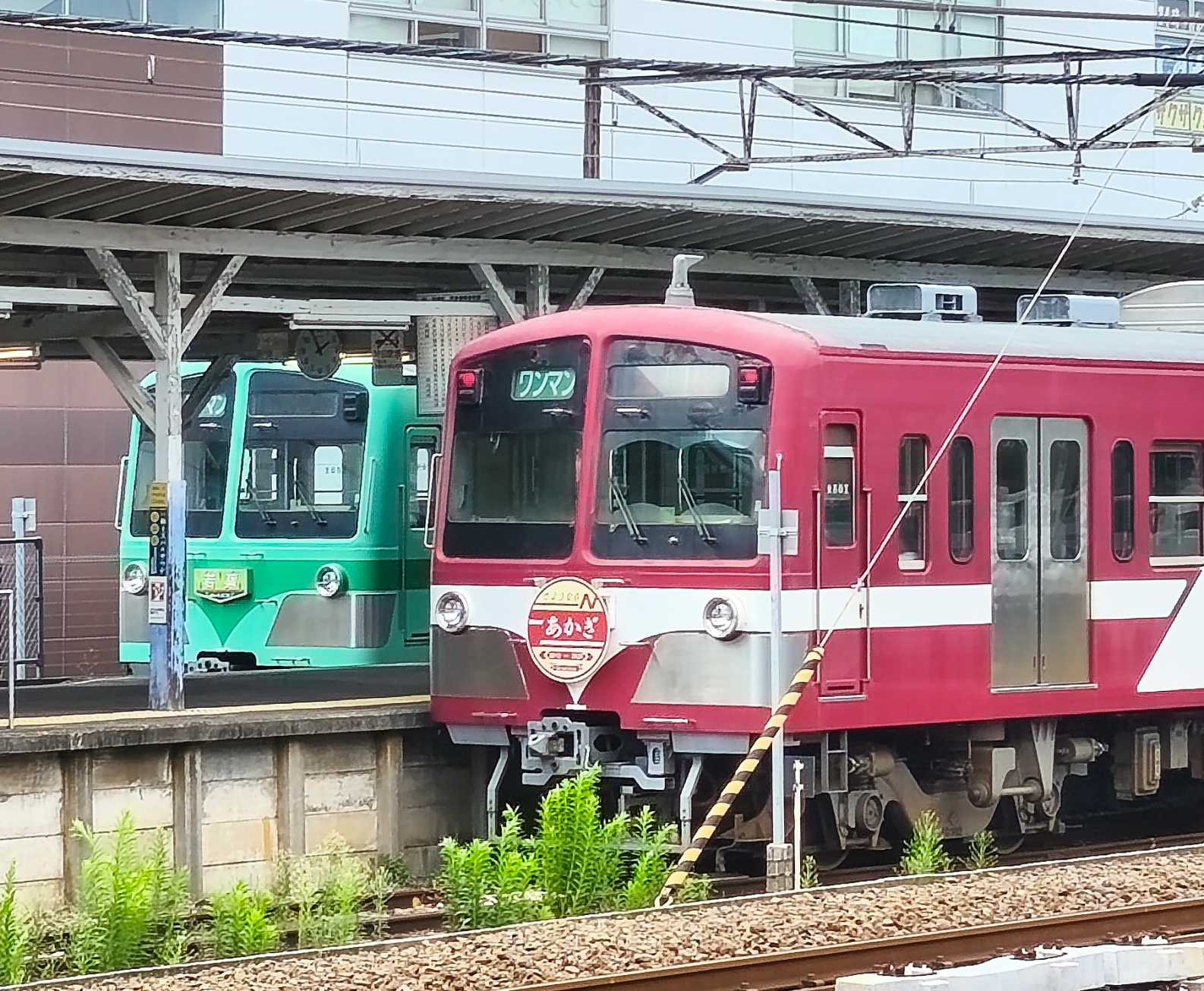 211系が来たことにより、代わりにいなくなってしまう車両がいます。 そのうち、すべての車両が211系に置き換えられてしまうのでしょうが、まず「あかぎ」と呼ばれる真っ赤な車体の編成が引退することになりました。 2025年9月半ばでの引退が決まり、流鉄HPでも告知されています。 そんな流鉄、先日久しぶりに見てきました。 ![]() 引退してしまう編成「あかぎ」。この日は走ってくれていました。 惜別ヘッドマークが付いています。 元は西武の101系。塗装は変わりましたが、雰囲気はそのまま。 「あかぎ」の名称をきくと、だいたいの人は群馬の赤城山を連想すると思われます。 鐵な方は、「急行あかぎ」や「新特急あかぎ」「スワローあかぎ」に繋がるかもしれません。 車両の愛称「あかぎ」は平仮名で表記されていますが、漢字にすると「赤城」。群馬のそれと同じ。 流山市内に「赤城山」なる小さな山があります。「昔の洪水でこの神社の場所に群馬の赤城神社のお札が流れ着き、その山の頂に赤城神社を建て祀られている」と言い伝えられているようです。 地名そのものも「その洪水で赤城山の崩れた一部が流れ着き、山になった」ので流山の地名にもなったという話もあります。 流鉄に平和台という駅がありますが、昔の駅名は赤城台でした。 ![]() 幸谷駅に停車中の「あかぎ」。馬橋方にも違うデザインのヘッドマークが付いています。 ![]() 幸谷駅への入り口。左上には武蔵野線。高架下を上手い具合に屋根代わりとして通路にしています。 ![]() 流山行の列車が来ました。黄色い車両「なの花」です。 「なの花」はまだ引退しませんが、近いうちに211系に代わってしまうでしょう。 別の記事でも書いていますが、菜の花は千葉の県花です。愛称はそこから来ているのでしょう。 先日記事にした「サンキューちばフリーパス」のフリー路線に、流鉄はもちろん入っています。 ![]() 幸谷駅の看板と。駅ナンバリングはRN2。 しかし流鉄、いまだに交通系ICカードは使えません。今後も導入されることはなさそうです。 都心からかなり近い路線ですが、 ![]() 幸谷駅はマンションの1階にホームがあることで知られています。 以前、別の記事で、この駅を反対側から撮っていました。 ![]() (関連記事:ひと駅さんぽ 北小金~新松戸) ![]() この塗装、黄色なので、いちばん西武の雰囲気に近いように思えます。 正規品 KATO カトー 鉄道模型 Nゲージ 流鉄5000形タイプ 「流星」「なの花」 4両セット 10-953 ![]() 幸谷駅。昭和50年代に移転しています。 この踏切の右側にあったらしいのですが、痕跡は見つからず。 当時の国鉄との乗り換えでの利便性を高めるためだっと記憶しています(その頃、松戸市民だったので) 新松戸は武蔵野線開業によって出来た駅。 開業当初の武蔵野線、よく言われていますが、本数は少なく、旅客はオマケで貨物がメイン。 今では考えられないのですが、昼間は40分間隔でした。 ![]() 場所を移動して、走行している写真を撮ってみます。 「あかぎ」なんとか順光で撮れました。いまのスマホ、性能良いです。 背景に単線用架線柱があります。武蔵野線馬橋支線です。 ![]() 再び「あかぎ」。 ![]() 今度は「なの花」。架線柱が被ってしまった。 そういえば数年前、車両故障が起き、「なの花」と「あかぎ」の1両ずつを連結した編成が登場したことがありました。黄色と赤ので組み合わされ「オムライストレイン」の愛称まで付きました。 (オムライストレインにつきましては、検索するとたくさん出てきます) 今度は馬橋駅です。 馬橋が流鉄の起点になります。 ![]() 停車中の「あかぎ」と、奥には緑の編成「若葉」がいます。 常磐緩行ホームから撮りました。 【中古】カトー (KATO) ホビーセンターカトー Nゲージ 流鉄5000形タイプ 「あかぎ」 「若葉」 4両セット (2編成) 鉄道模型 電車 10-966 ![]() 「あかぎ」停車中の全体。 【中古】ジオコレ TOMYTEC(トミーテック) (552-553) 鉄道コレクション 総武流山電鉄 1300形 (クモハ1301+クハ71) 2両セット 【A】 メーカー出荷時の塗装ムラ等はご容赦下さい ![]() なぜか5003号車だけ撮っていました。 全編成共通の模様。流山のNをデザイン化したものです。 ![]() 真横から。形式写真のようになりました。 ![]() 再び編成の全体を撮ってみます。 なお車両の手前にある線路は、「あかぎ」のすぐ隣から、常磐下り・馬橋支線・常磐上りです。緩行線の線路は見えていません。 ![]() 前パンタ先頭車、やはりサマになります。 ![]() 「あかぎ」出発後。ホーム向こうに「若葉」がいます。 「若葉」編成は翌朝まで留置されます。 ![]() 馬橋駅のJR改札を出ます。流鉄はほぼ南北に通っている常磐線の西側に駅があります。 ![]() 馬橋駅、流鉄ホームへ降りる階段です。時刻表もあります。 ローカル私鉄とはいえ、本数は結構多く設定されています。 全線が単線で、途中で交換できる駅は小金城趾の1か所のみ。それでいてこの本数は、かなり頑張っているはずです。 ![]() 【中古】 町民鉄道の60年
