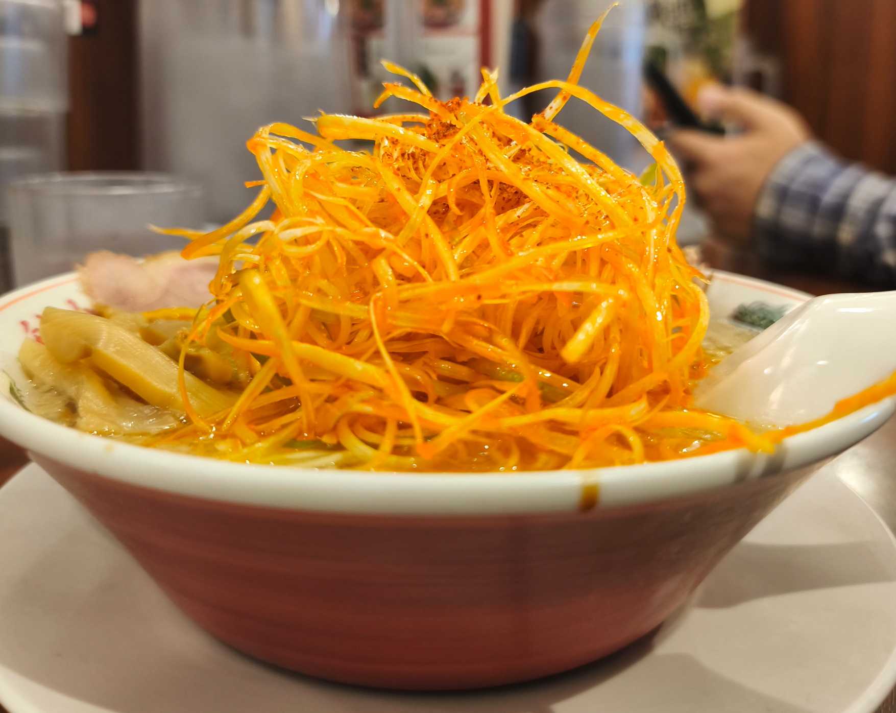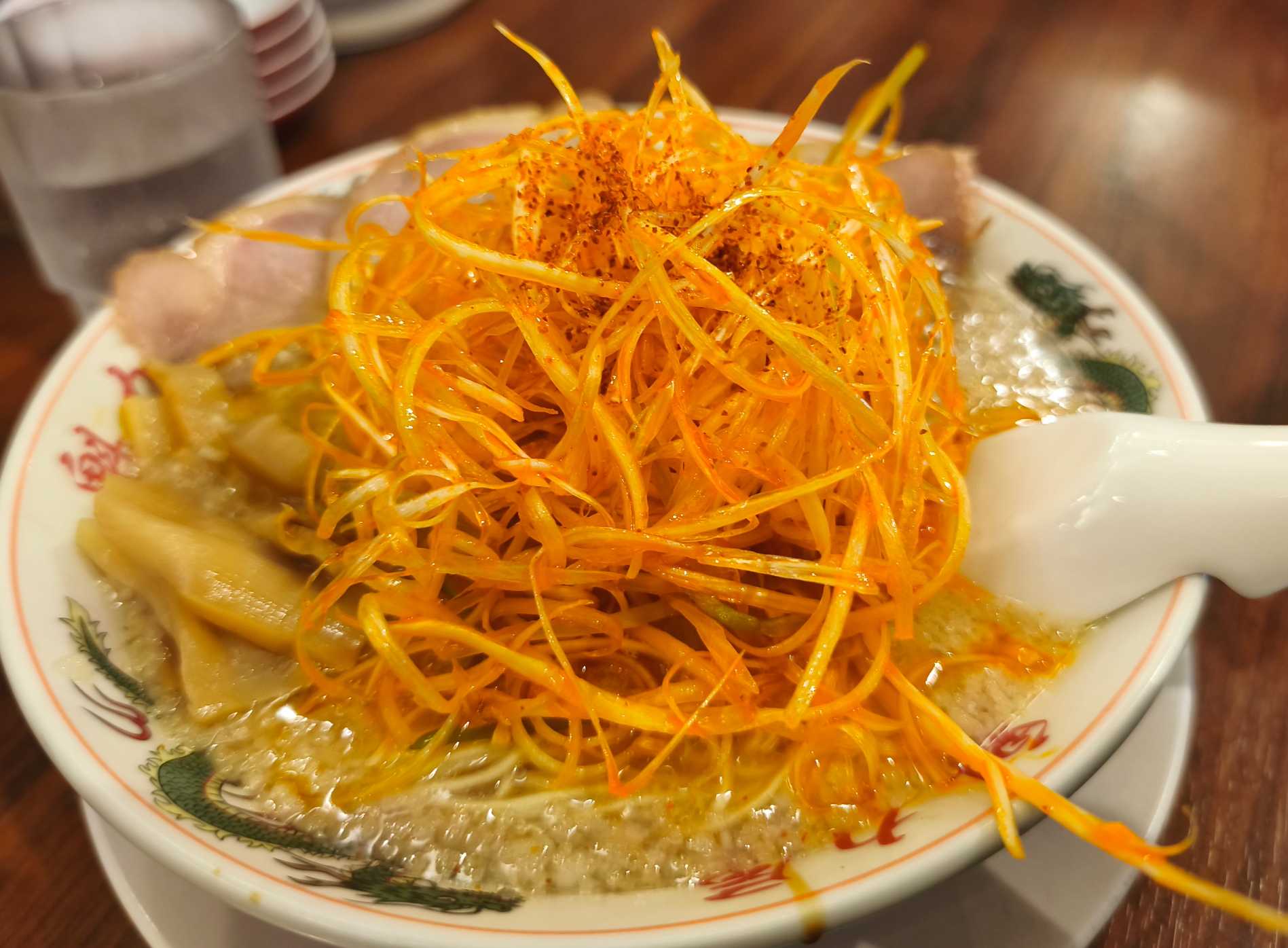 (関連記事:ラーメン 魁力屋) 今回は行った日がちょっと寒い日だったので、辛い物をチョイス。 ![]() 辛味噌ラーメンです。 見た目からして、かなり辛そう。 ![]() 汁はかなり赤め。 味噌だからか、透きとおっておらず、なおさらに濃い感じがしています。 ![]() ネギがけっこうな量、のっていました。 通常のネギ量なのでしょう。 ![]() 麺はけっこう細め。まだ口をつける前ですが、麺に辛味がしっかり付いています。 しかも今回、なぜだか辛さレベル2を頼んでしまいました。 最近はご無沙汰ですが、来来亭の旨辛麺では3辛をいつも頼んでいたました。 4辛までは値段変わらない(5辛以上は割増料金)ので、大丈夫かと思っていたのですが、予想以上に辛かった。 無理はしない方が良いみたいです。 ちなみに奥様は、 ![]() コク旨の辛ネギラーメン。 ネギラーメン+辛さ、ではなく、辛いネギがのっかっているラーメンです。 ![]() 辛ネギ、けっこうモリモリ。 こちらのほうが美味しかった。 ―――― お気に入りの記事を「いいね!」で応援しよう