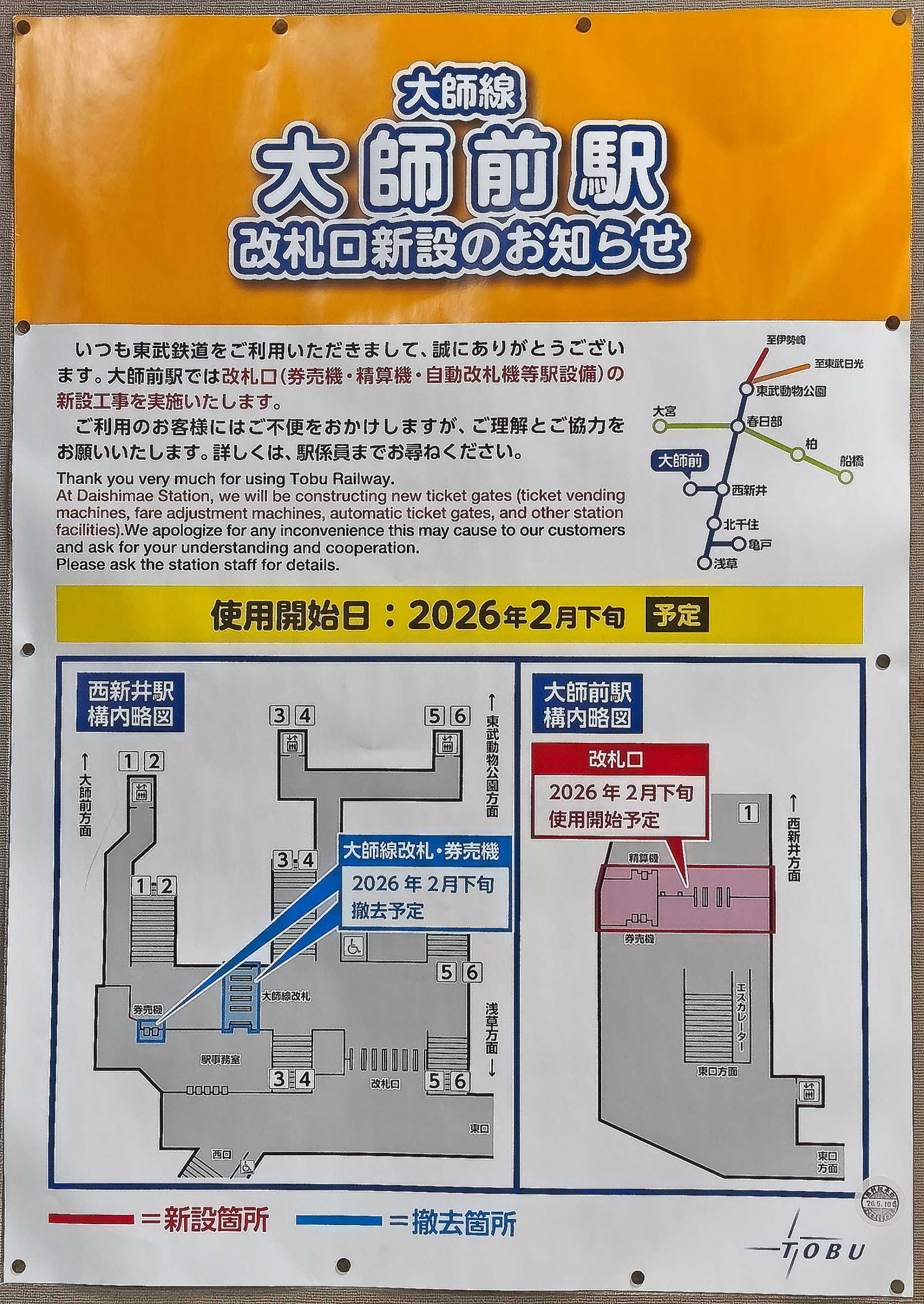 (関連記事:2026鐵初め 大師前駅をみる) 大師線に乗るには西新井駅で乗り換える必要があります。そんな西新井駅、ホームに降り立ったことも初めてだったので、いくつか記録をしてみました。 ![]() 大師線運用中の10050系。 ![]() 北千住から来たので、降りたホームは3・4番線。 ![]() 駅名標です。 ![]() 北千住からの複々線区間で、いちばん最初に急行線側にもホームが設置されている駅になります。 ホームドアは無いようですが、いずれ取り付けられるのでしょう。 チラリ見える反対の緩行線側はホームドア設置済。 ![]() 大師線が到着です。 ![]() 初詣期間ということもあり、多くの人が降りてきています。 大師線はかつて、西板線として建設された過去はよく知られています。 歴史にIfはありませんが、仮に西板線が開業していれば西新井駅は相当大きなジャンクションになっていたと思われます。 さてこのカットを撮ってから、駅ホームのラーメンを食しました。 ![]() (関連記事:駅ラーメン@西新井) ![]() 階段を上り、改札の方向へ向かいます。 発車案内は方向別。編成長さも表示されます。 緩行線は7連で統一されていますが、急行線は6連・8連・10連が混じって来る時間帯があるので、編成長の表示は必要でしょう。 ![]() 改札口で。右奥にある青い案内は大師線乗り場。 ![]() 大師線に乗るためには、この改札を通る必要があります。 ![]() 大師前駅には改札が無い旨、ここの案内に記されています。 単なる乗り換え中間改札だと思う人は、切符を入れても出てこなくて、驚くのでしょう。 ![]() 大きな案内もあります。 ![]() 北千住で東武線に乗る際、久しぶりに切符を購入してきました。 この改札機を味わうためです。 ちなみに北千住で撮った運賃表。 ここで、くだらない比較を、、、どちらがおトクかを区間別で。 大宮:JR¥490‐、東武¥610‐。あれ?東武の方が高い。 柏・船橋は論外なので比較せず。 亀戸:JR¥230‐、東武¥210‐。あまり変わらず。 しかしこれが遠距離となると、、、 伊勢崎:JR¥2,310‐、東武¥1,230‐。 とくに北関東方面は、東武が優勢。 ![]() 改札を通り大師線エリアにはいりました。 見えている改札機に切符は吸い取られていますので、なぜだか無賃乗車の気分。 改札機そばに券売機があり、運賃表があります。 大師前駅からの運賃が記載されています。 ![]() いよいよ大師線のホームへ向かいます。 ![]() 混雑を想定しているのか、前の方にお進みくださいの文字が。 ![]() 大師線の専用1番線。2両分しかホームはありません。 普段は使われていないホームですが、正月三が日は2本の列車で運用されていたため、こちらのホームも使用していたようです。 ![]() 本数がけっこう多く、ほぼ10分ごと。 同じ数字が綺麗に並んでいるように見えますが、12時台の2本目のみ、他の時間帯とは違い14分発。李湯は後述します。 間違い探しみたいで、YouTubeのショート動画にできそう。 ![]() 大師線ホームから伊勢崎線ホームをみます。 ちなみに大師線側にもホームドアは設置されていません。 新型車両の投入が公式で発表されていますので、それと合わせ大きな変化が起きるような気がします。 あまり知られていませんが、全長が短い路線だからか、大師線には踏切が一つもありません。 ![]() 初詣の案内がなびいています。 ![]() ホーム先端まで来ました。 ![]() 暫らくいると、大師前からの列車が入ってきました。 ![]() 行先は「西新井の表示。 駅員さんが放送で「この列車は回送です」と案内していました。 それでも乗り込んでしまう方チラホラおりましたが、車内に入り全く乗客がおらず、ホームで待っている人たちの姿を見て慌てて車外へ。 ![]() 急行線は東急の5000系が発車するところです。 ミラーに写っている10050系は「回送」表示。 東急電鉄 田園都市線 5000系 4両基本セット 【10-1454】 (鉄道模型 Nゲージ) [鉄道模型]カトー (Nゲージ) 10-1455 東急電鉄 田園都市線 5000系 6両増結セット ![]() 東急5000系を見送ります。 10-1454 東急電鉄 田園都市線 5000系 4両基本セット[KATO]【送料無料】《発売済・在庫品》 ![]() 信号機が赤から黄に変わり、分岐器の方向も変わりました。 信号機の下には「ホ」の表示。本線という意味でしょう。 ![]() 回送表示の10050系が発車です。 【中古】Nゲージ グリーンマックス 31974 東武10030型(10050番代・東武スカイツリーライン・車番選択式) 基本4両編成セット(動力付き) 【A´】 スリーブいたみ ![]() 本線への分岐を通り過ぎます。これから北春日部まで回送されます。 ![]() 浅草方から10000系の回送列車がやってきました。 この日の午前中は亀戸線で走っており、朝ラッシュが過ぎた頃から、亀戸でしばしの休憩。 お昼前に亀戸を回送で出発し、ここ西新井までやって来ました。 こういう運用パターンは数年前から変わっておらず、8000系時代も同じでした。 ![]() (関連記事:東武鉄道 堀切駅 2023 その2) 堀切を通過する8000系2連の回送。 【中古】鉄道模型 1/150 東武鉄道8000系8501編成更新車2両セット 「鉄道コ