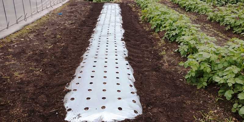 にんにくのホワイト六片・大島赤丸ニンニクと超極早生玉ねぎの畝にマルチ張りをした。