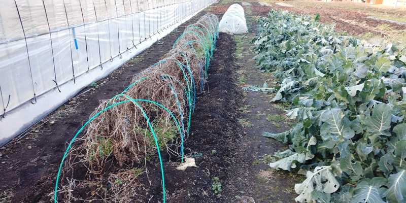 今後は、当面は月2回を目安に、カスミンボルドーとローテーションで散布を予定している。 ■中晩成種玉ねぎの「吊り玉極王」 初めて作付けする場所で、手前の方に比べて土の感じが違う。 ![]() ![]() ![]() ■超極早生玉ねぎの畝は、雨に当てたので元気が出たかな。でも、べと病の気配を感じる。 ![]() ■芽キャベツの畝 ![]() ■芽キャベツの初めての収穫。 ![]() ■そろそろ青パパイヤも片付けなくては・・w ![]() ■つくね芋も、まだそのままだww その他、サツマイモと秋ジャガの畝の残渣を年内には整理したいw ![]() ■イチゴの紅ほっぺ そろそろトンネルにしようと思っている。 ![]() ![]() ■とう立ち菜 ナバナとのらぼう菜