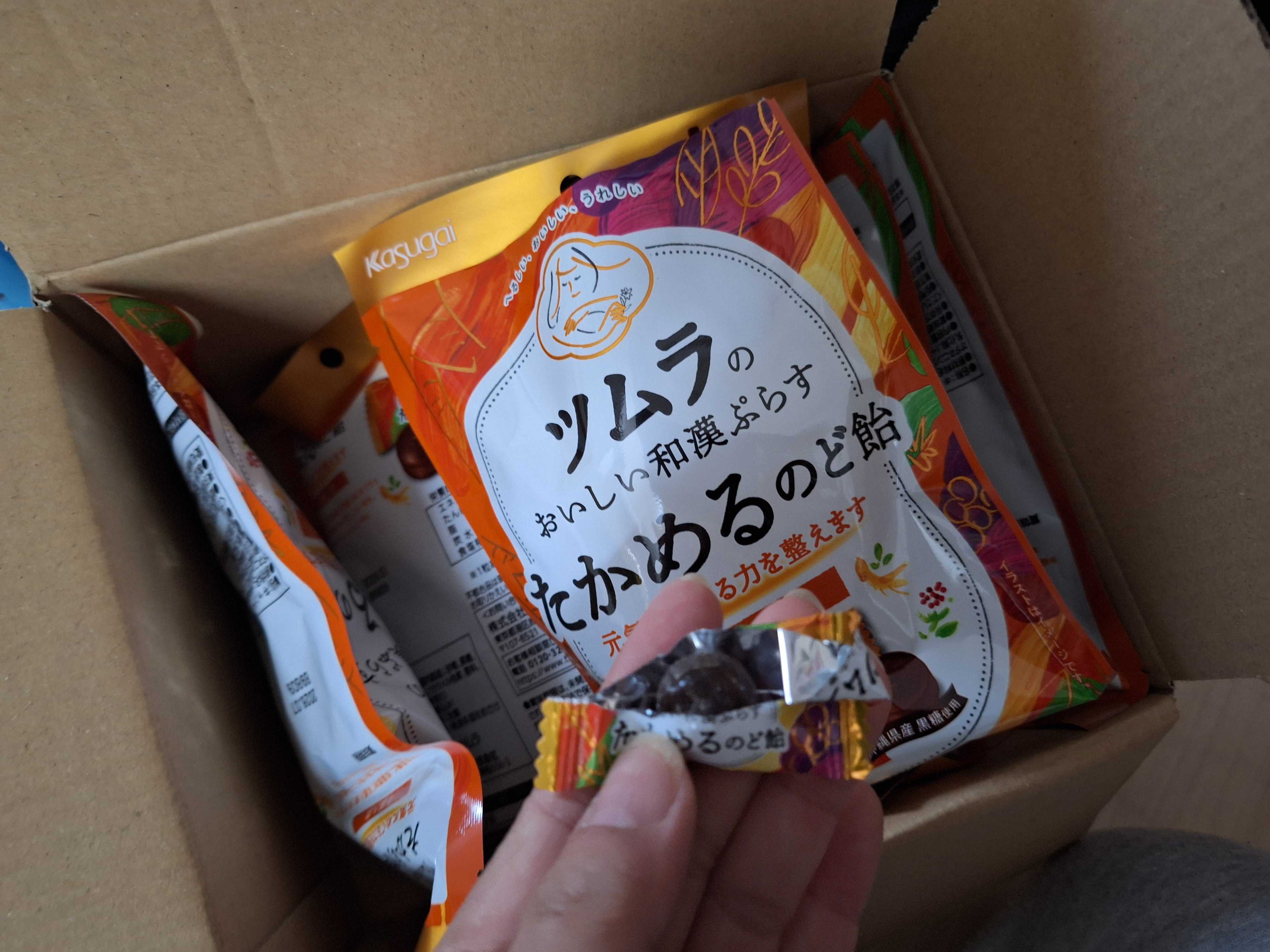 モラタメさんの試すでツムラさんの商品をお得に試す事ができました。ツムラのおいしい和漢ぷらす たかめるのど飴 会社が乾燥しているので、常にのど飴を食べています。最初、ちょっと癖がある味が苦手でしたが、いつしかやみつきになりました。漢方のツムラ、信頼して飲んでいます。デザインも女性ぽくあたたかみのあるデザインです。近所のドラッグストアで売っていないのが残念です。